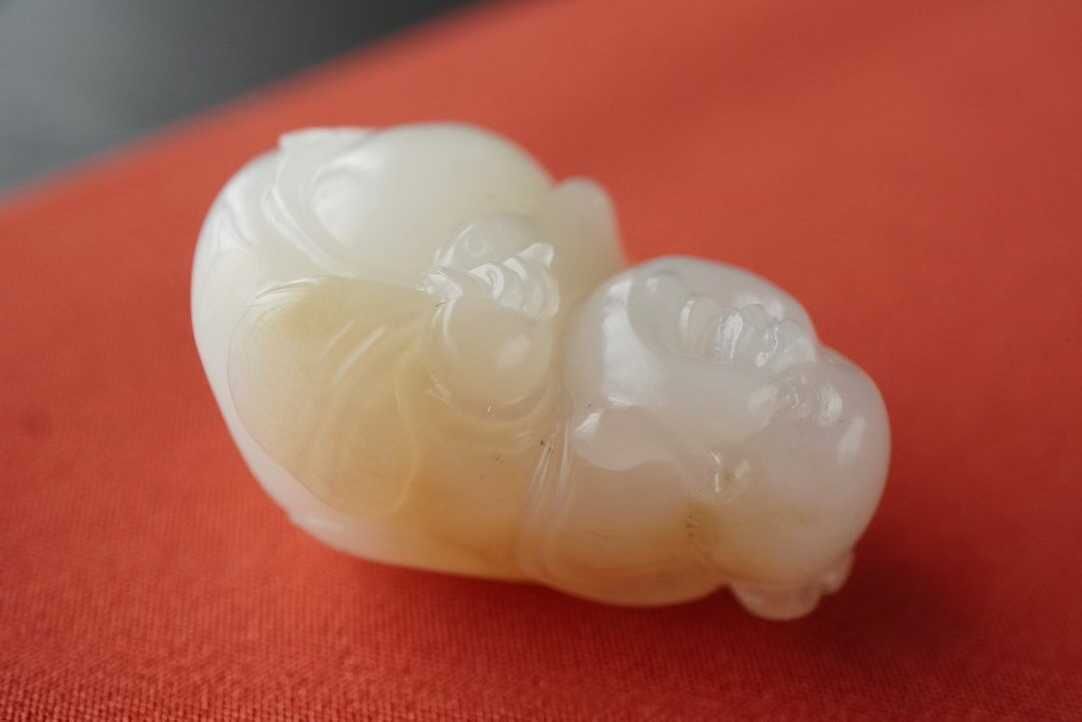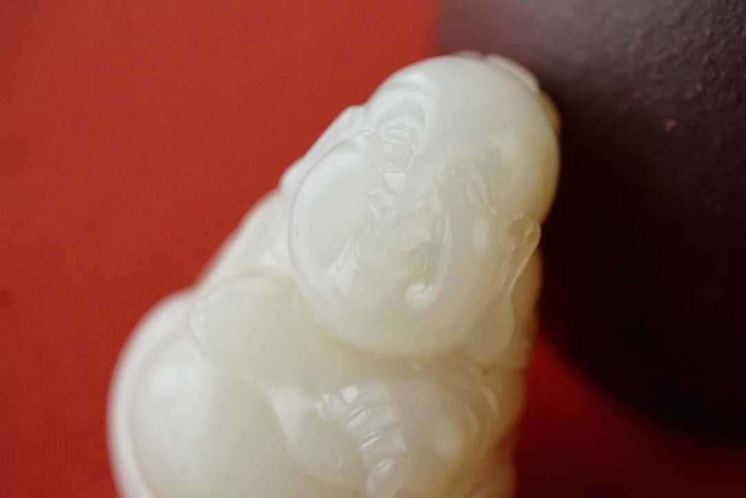 • 和田玉且末糖白料“笑口常開”彌勒佛掛件,天然和田玉軟玉