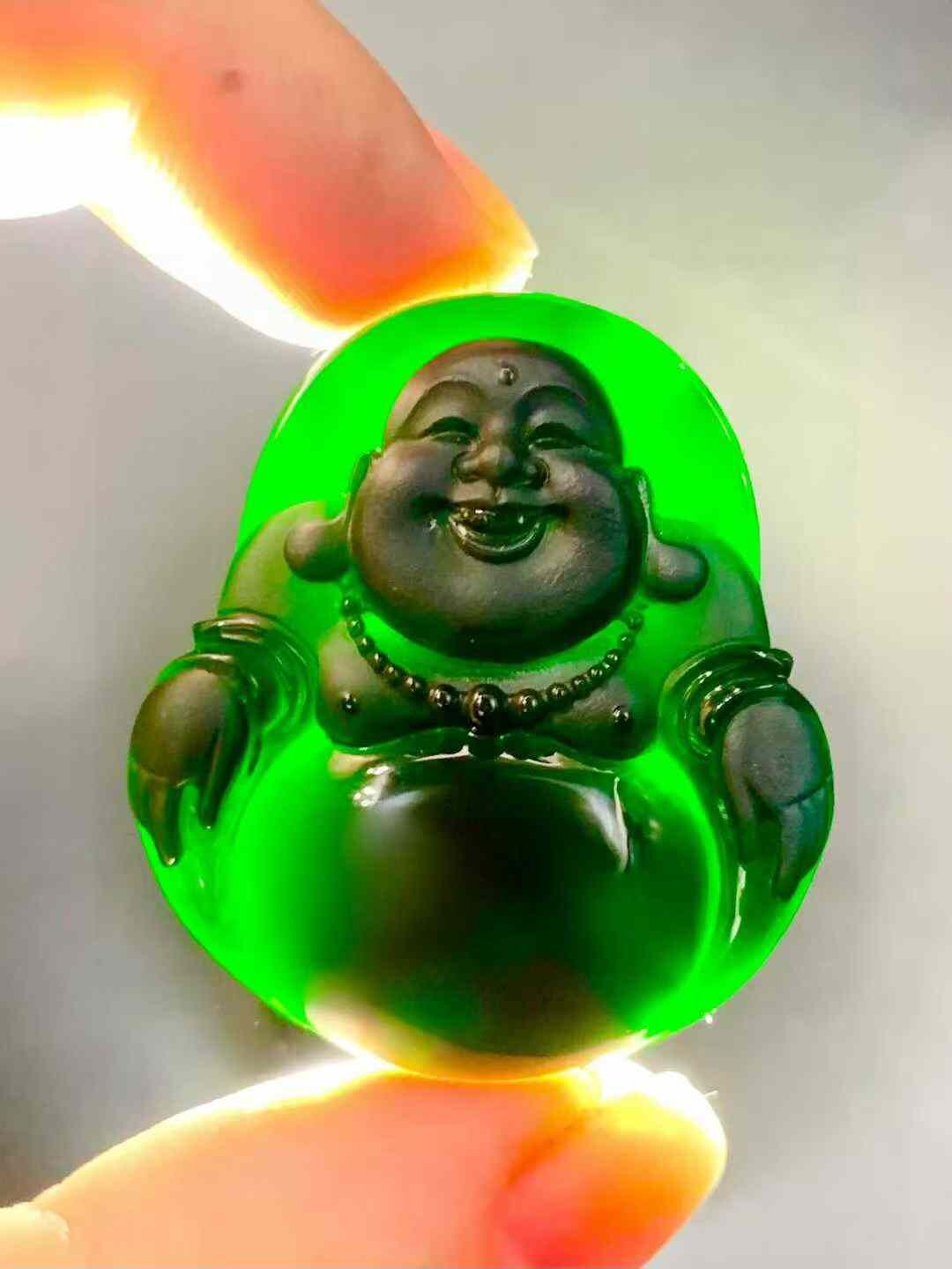 • 翡翠墨翠大肚佛,天然翡翠A玉, 緬甸玉, Jade, Jadeite