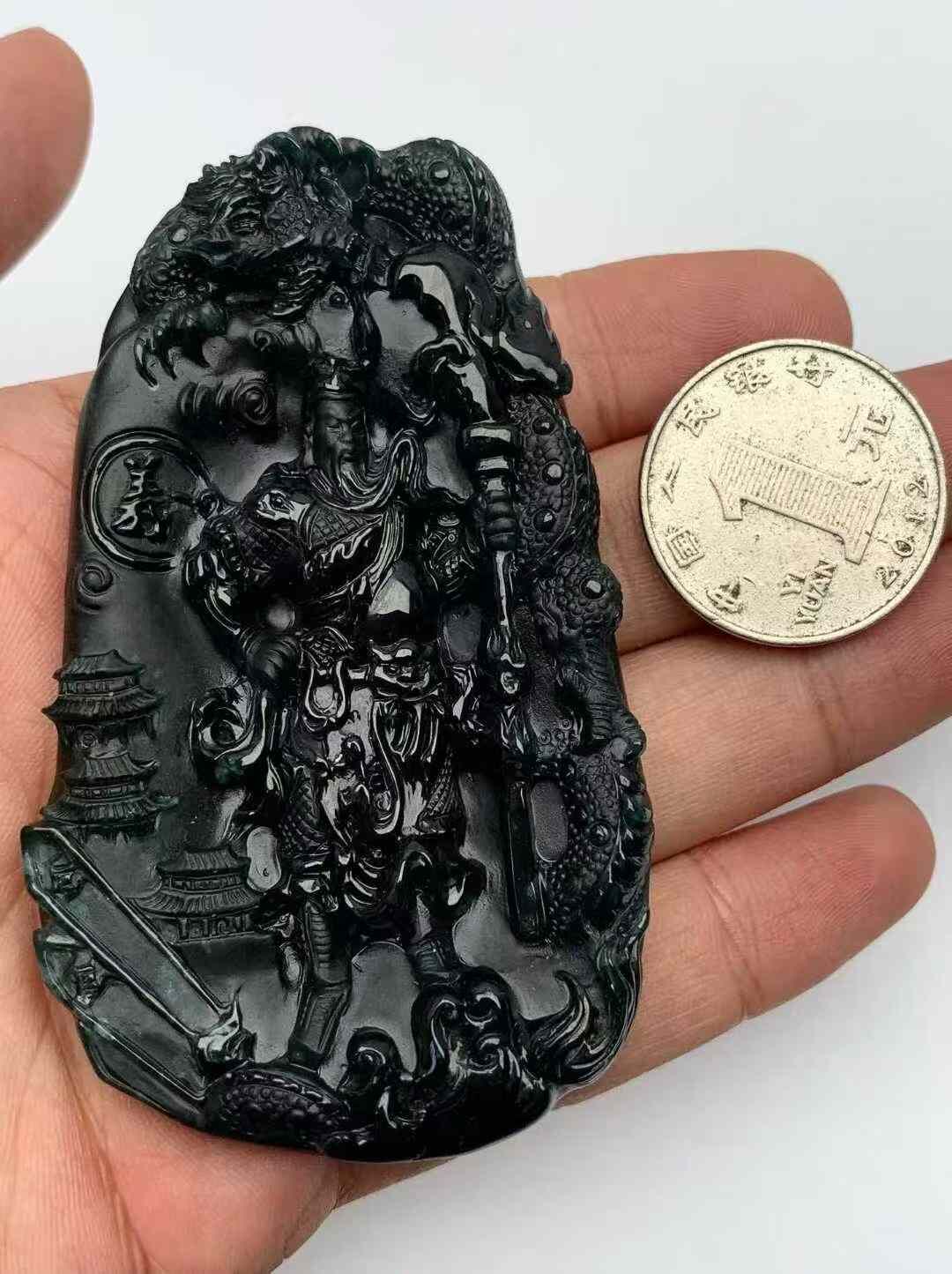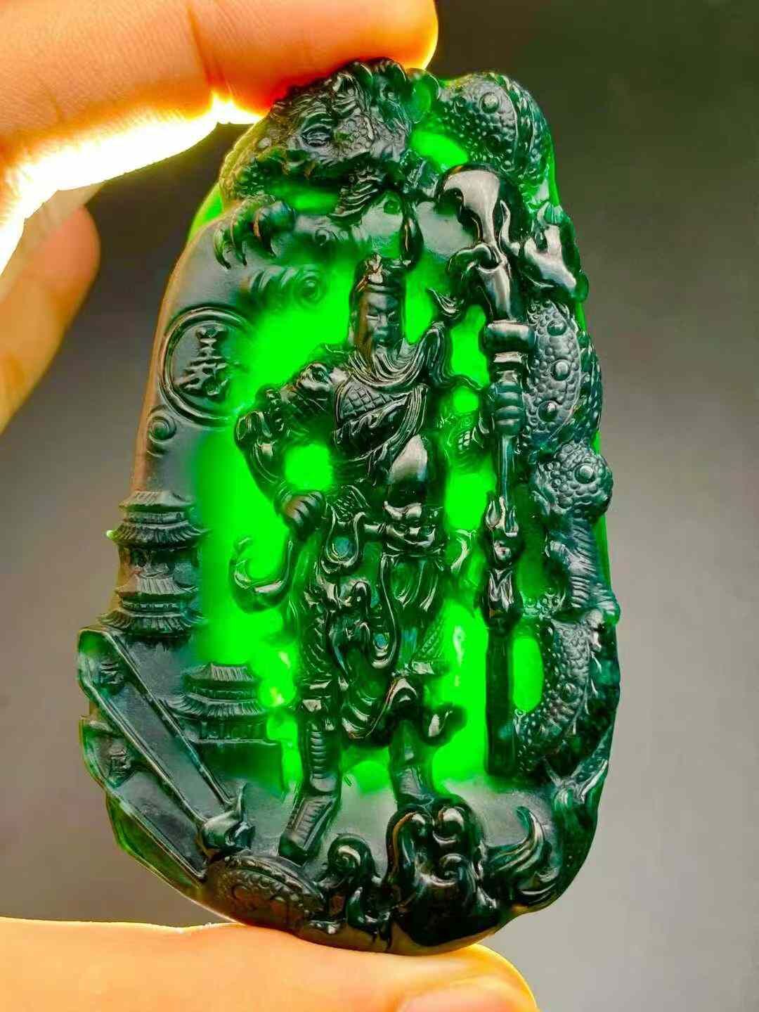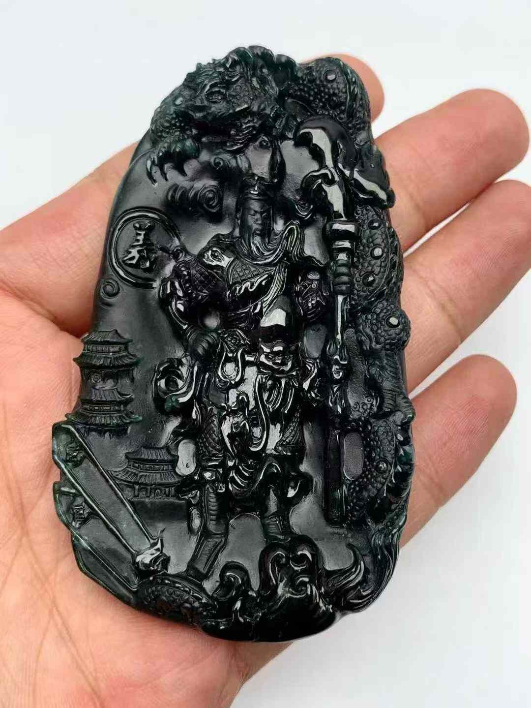 • 翡翠墨翠霸氣關公,天然翡翠A玉, 緬甸玉, Jade, Jadeite