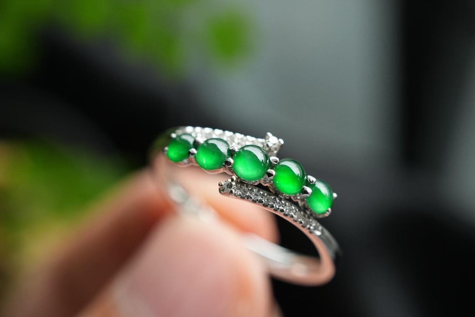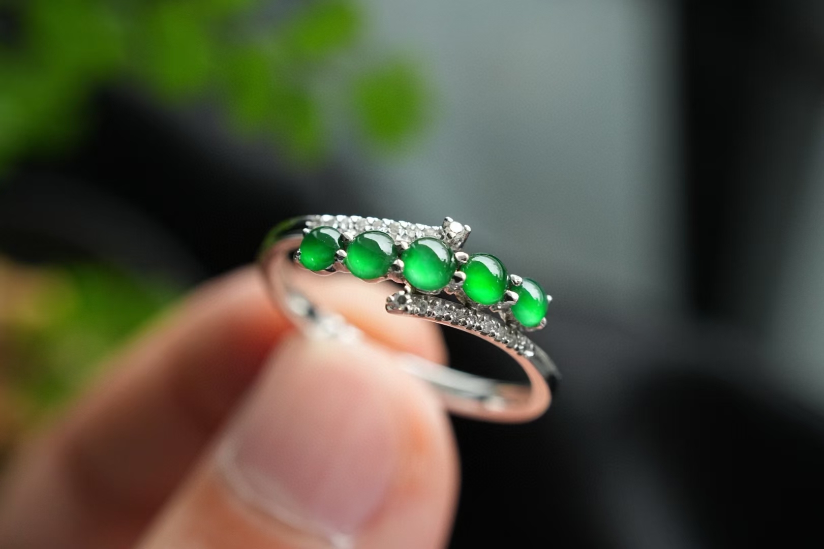 • 翡翠冰陽綠蛋面排戒,天然翡翠A玉, 緬甸玉, Jade, Jadeite