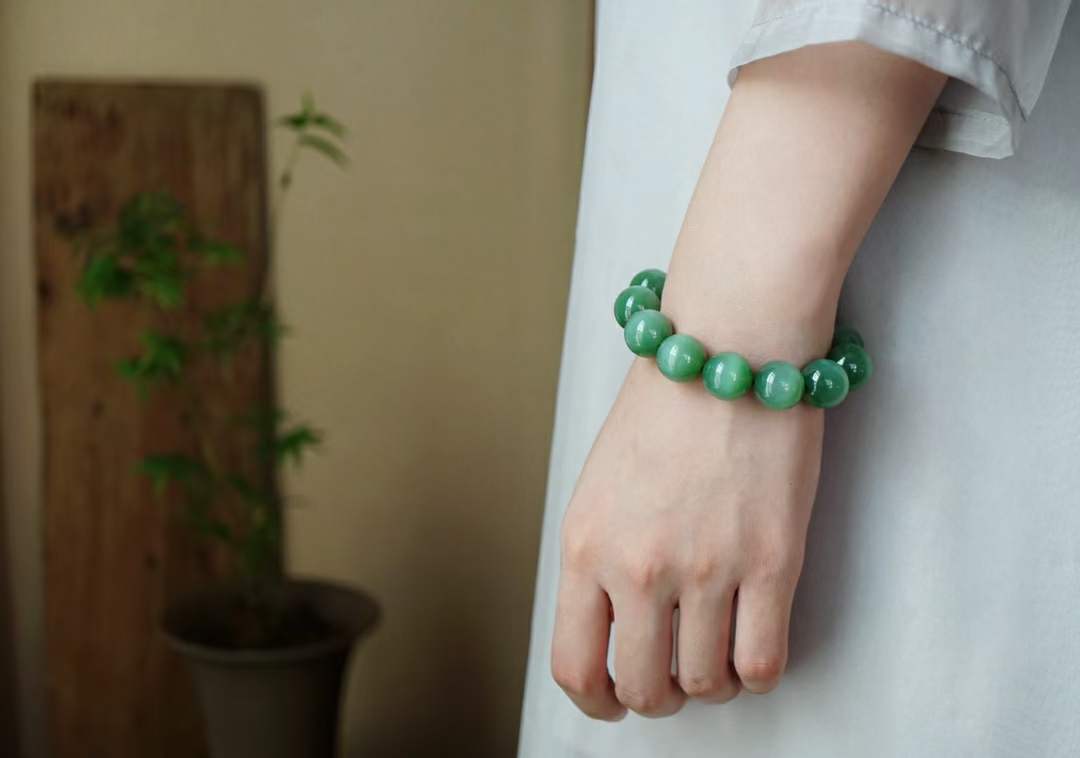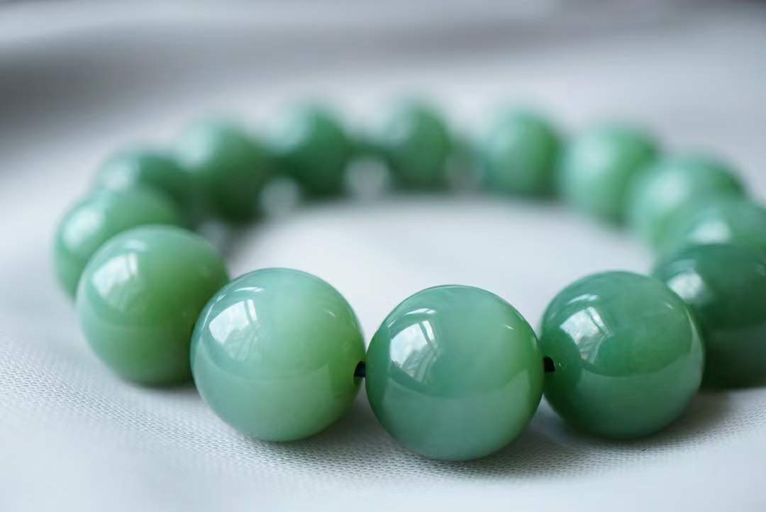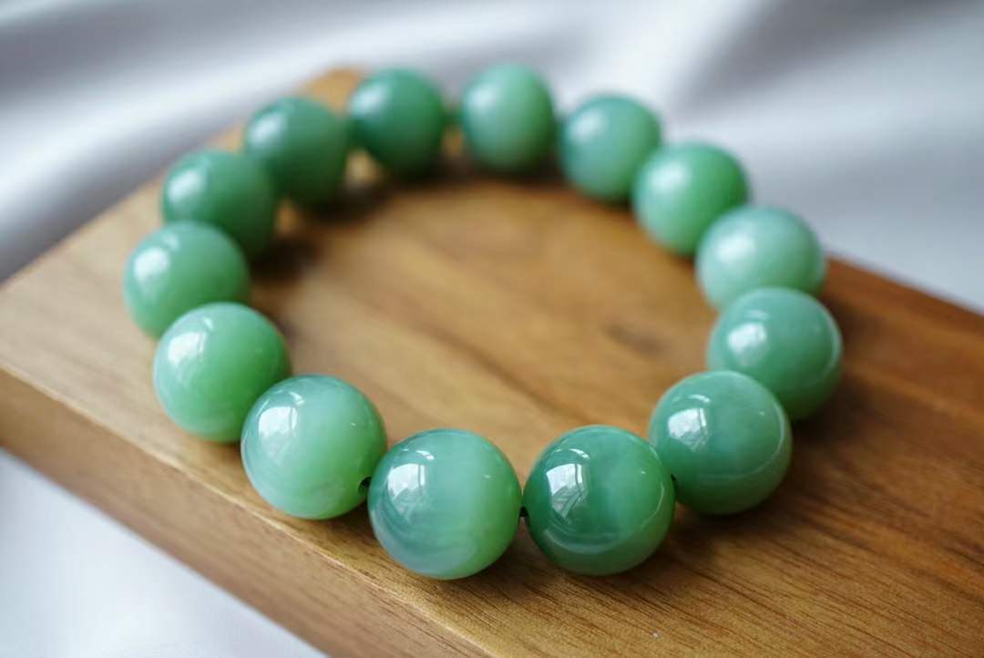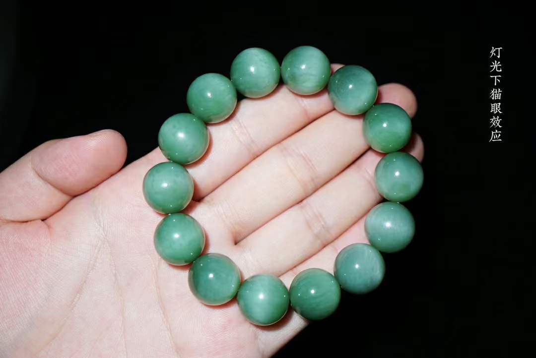 726416 和田玉碧玉粉青貓眼圓珠手串 (14.5mm直徑)