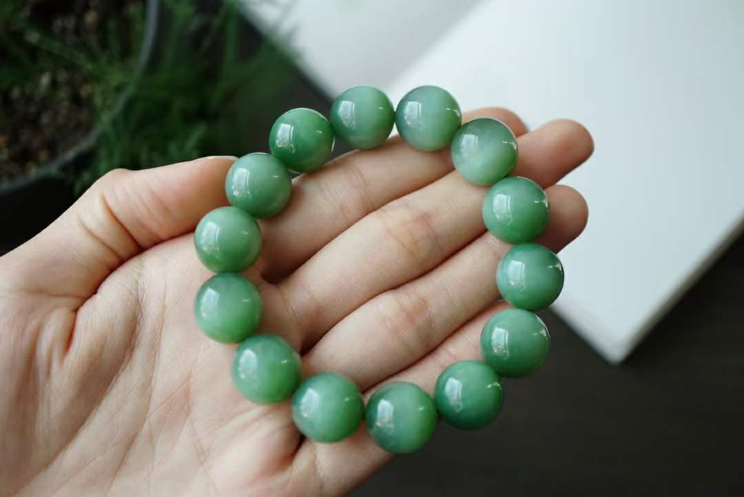 726416 和田玉碧玉粉青貓眼圓珠手串