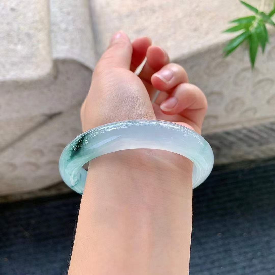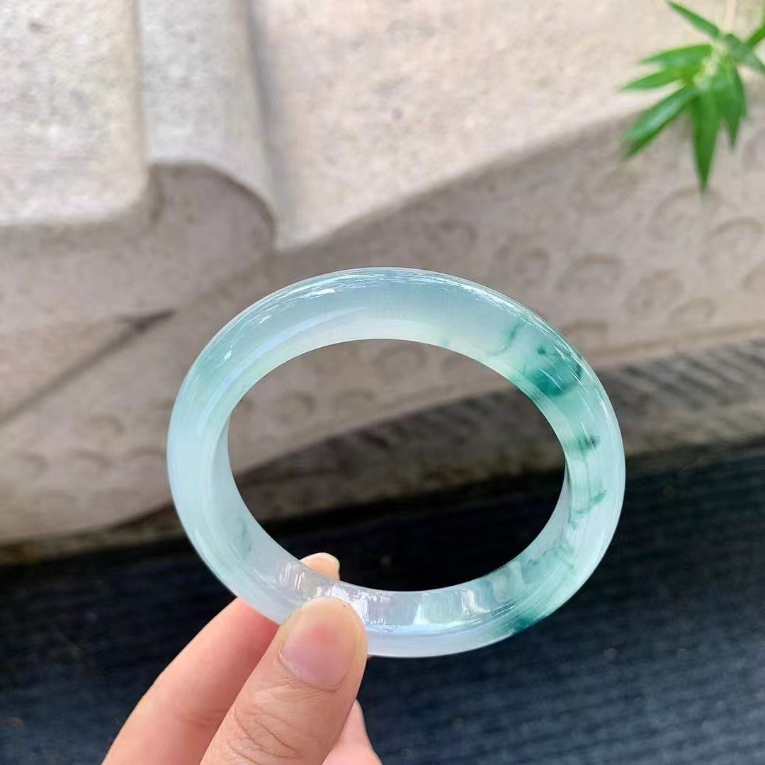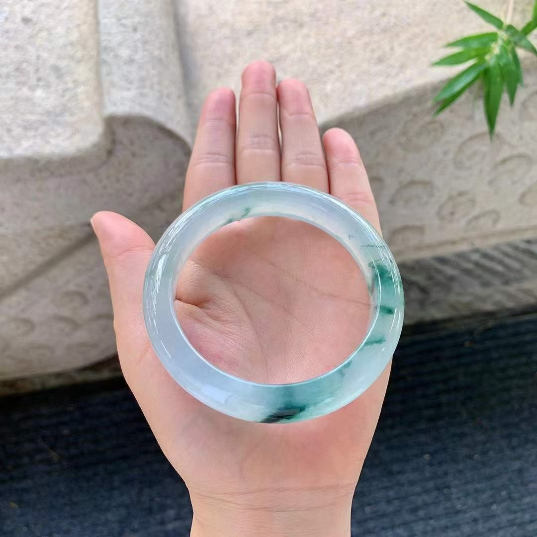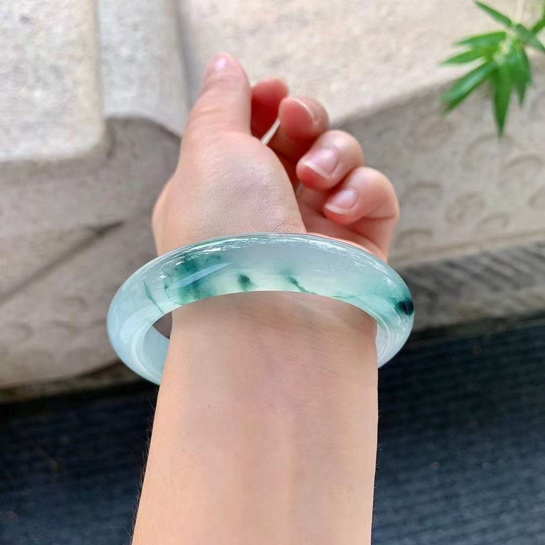 • 冰種飄花翡翠手鐲,天然翡翠A玉, 緬甸玉, Jade, Jadeite