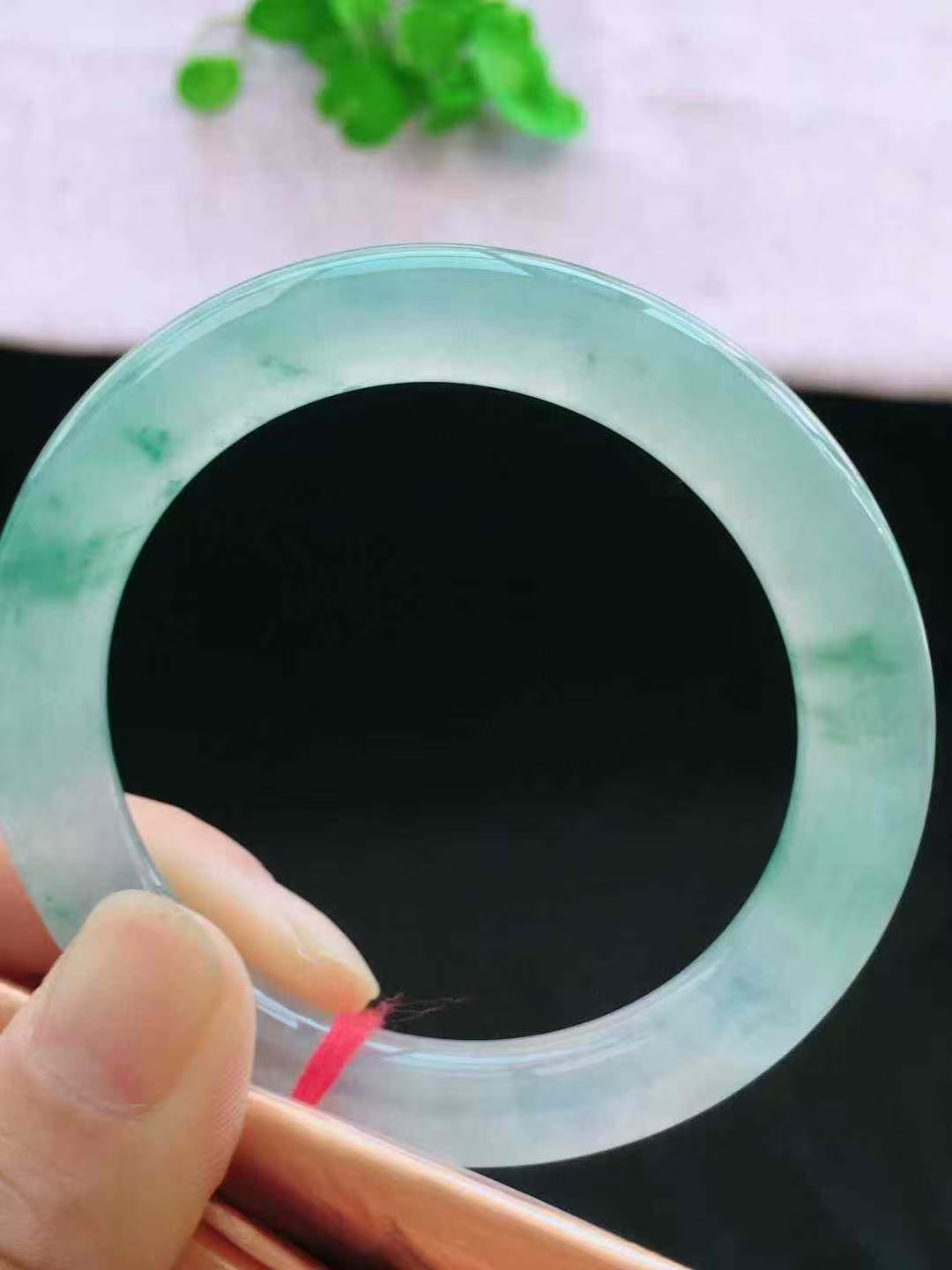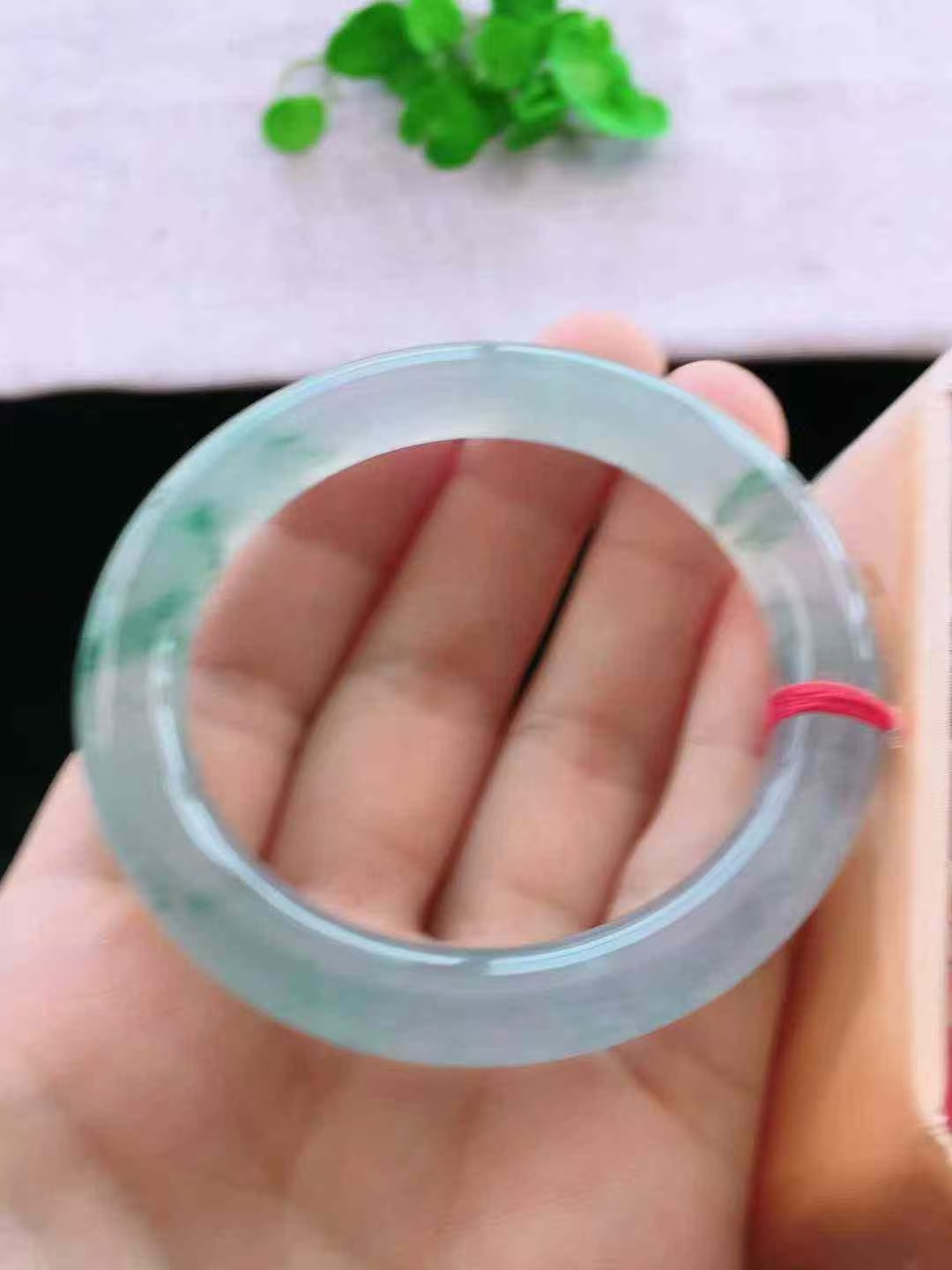 • 冰飄花翡翠圓條手鐲,天然翡翠A玉, 緬甸玉, Jade, Jadeite