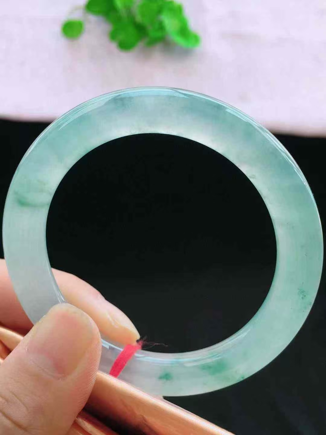 天然翡翠A玉,完美,正圈55-56可戴,種老水足,起光。