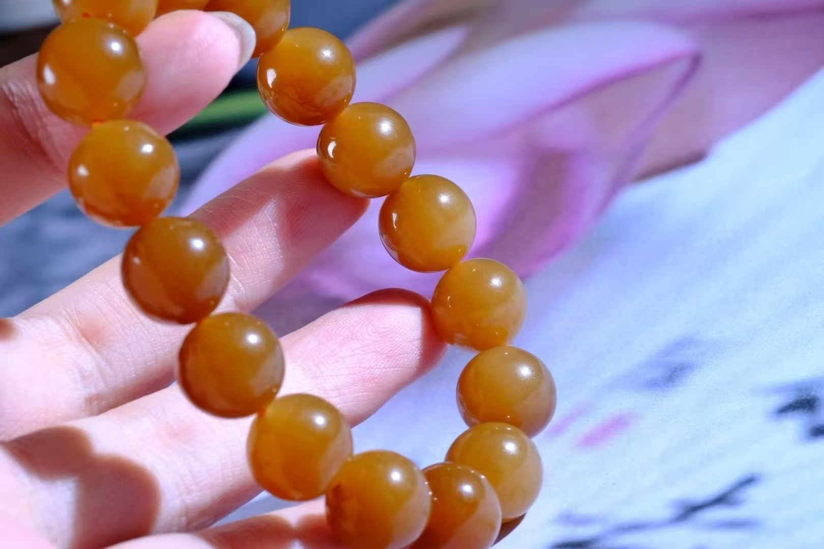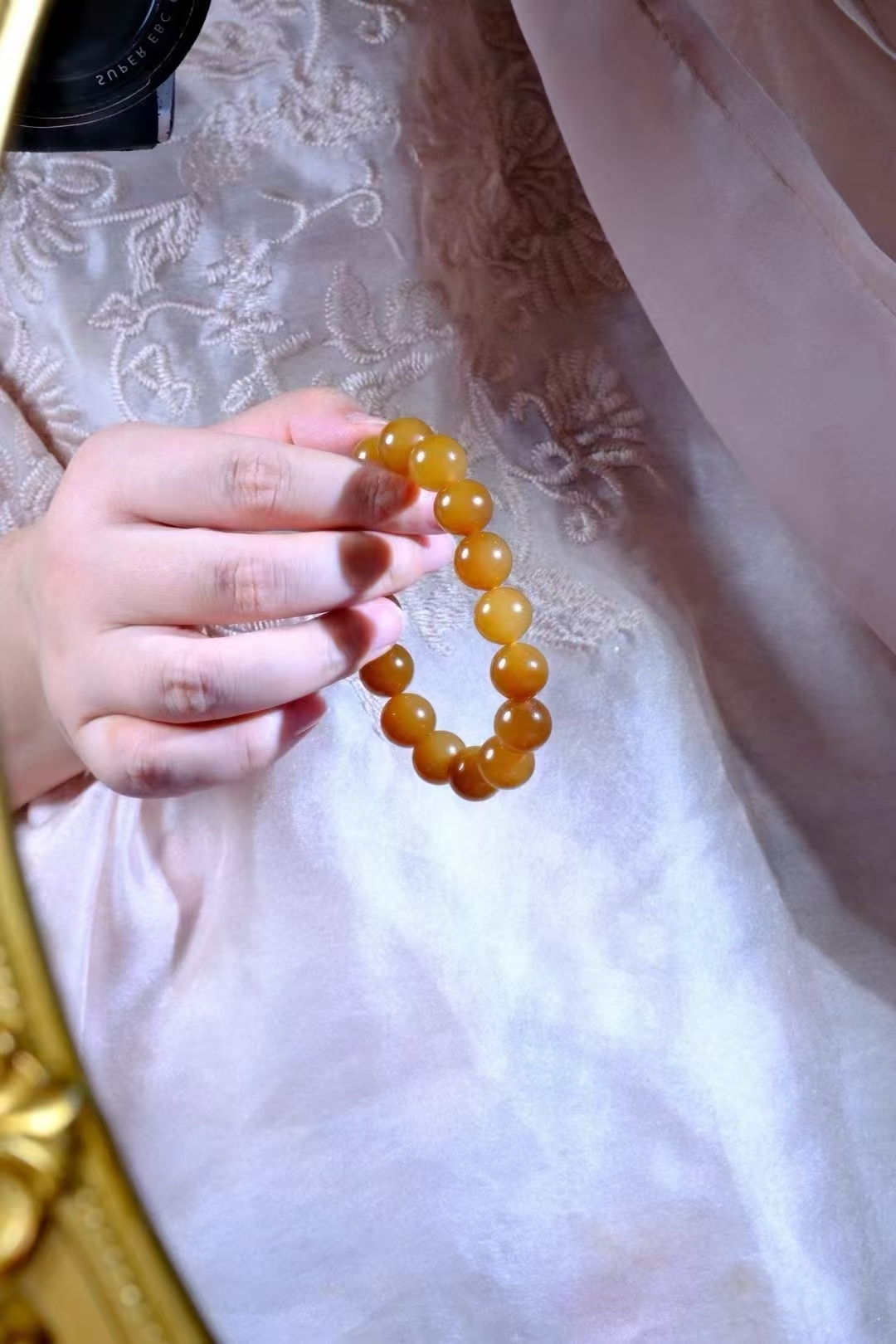 • 和田玉金山糖蜜糖手串 (12mm直徑),天然和田玉軟玉