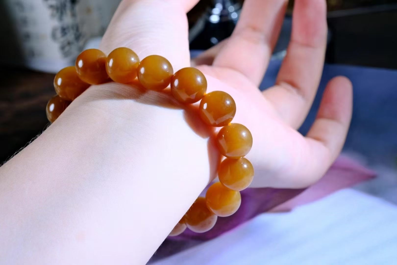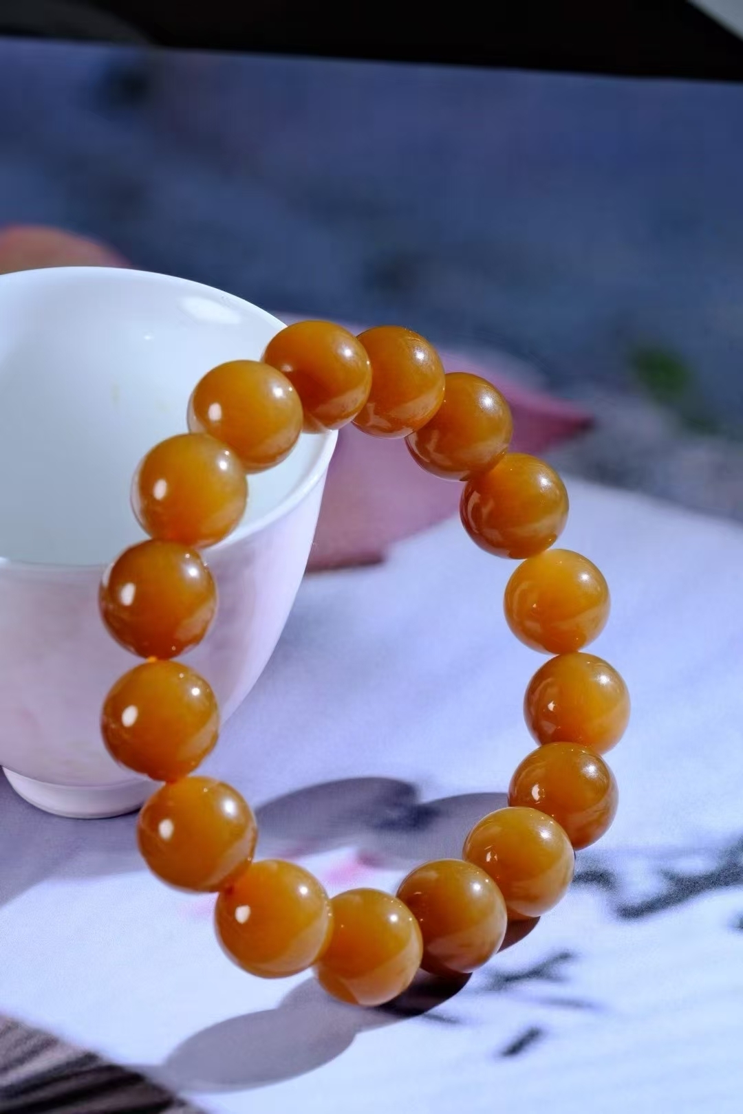 726715 和田玉金山糖蜜糖手串 (12mm直徑)