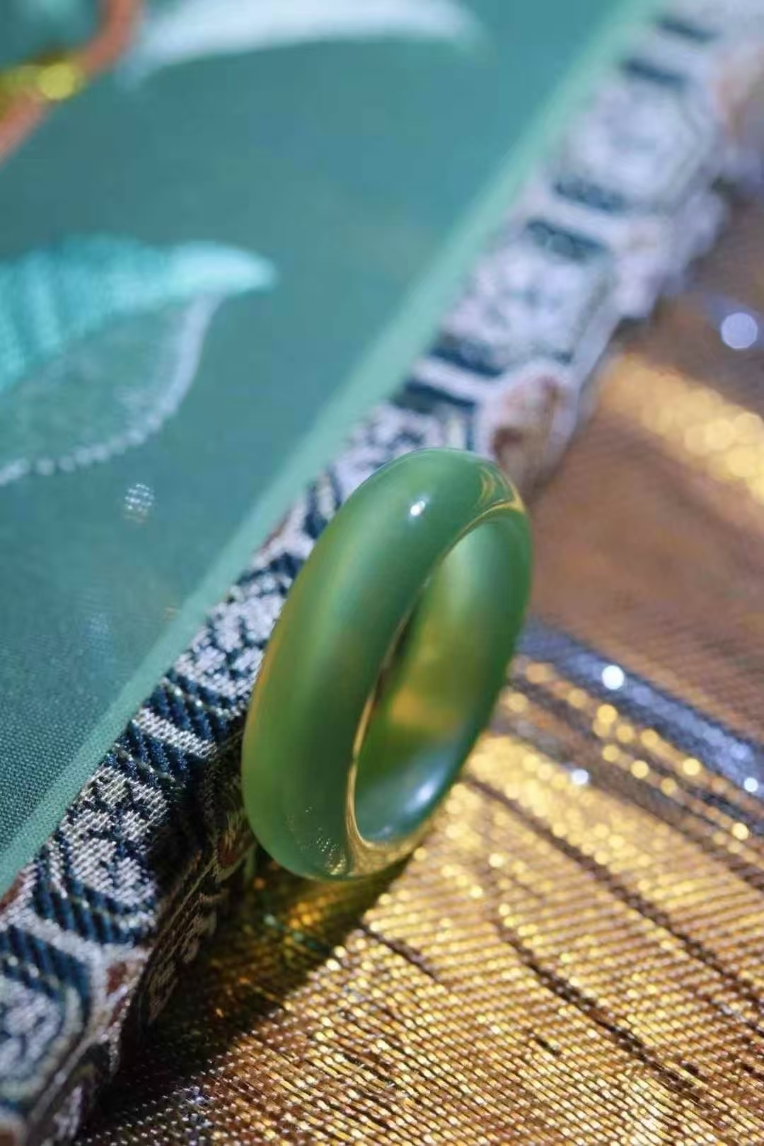和田玉碧玉貓眼“財運戒”,水波紋代表財富綿延不絕,水靈靈的一圈超級好看!承載著日月精華,每個角度轉動都很美,獨一無二,無黑無裂!玩家必備!