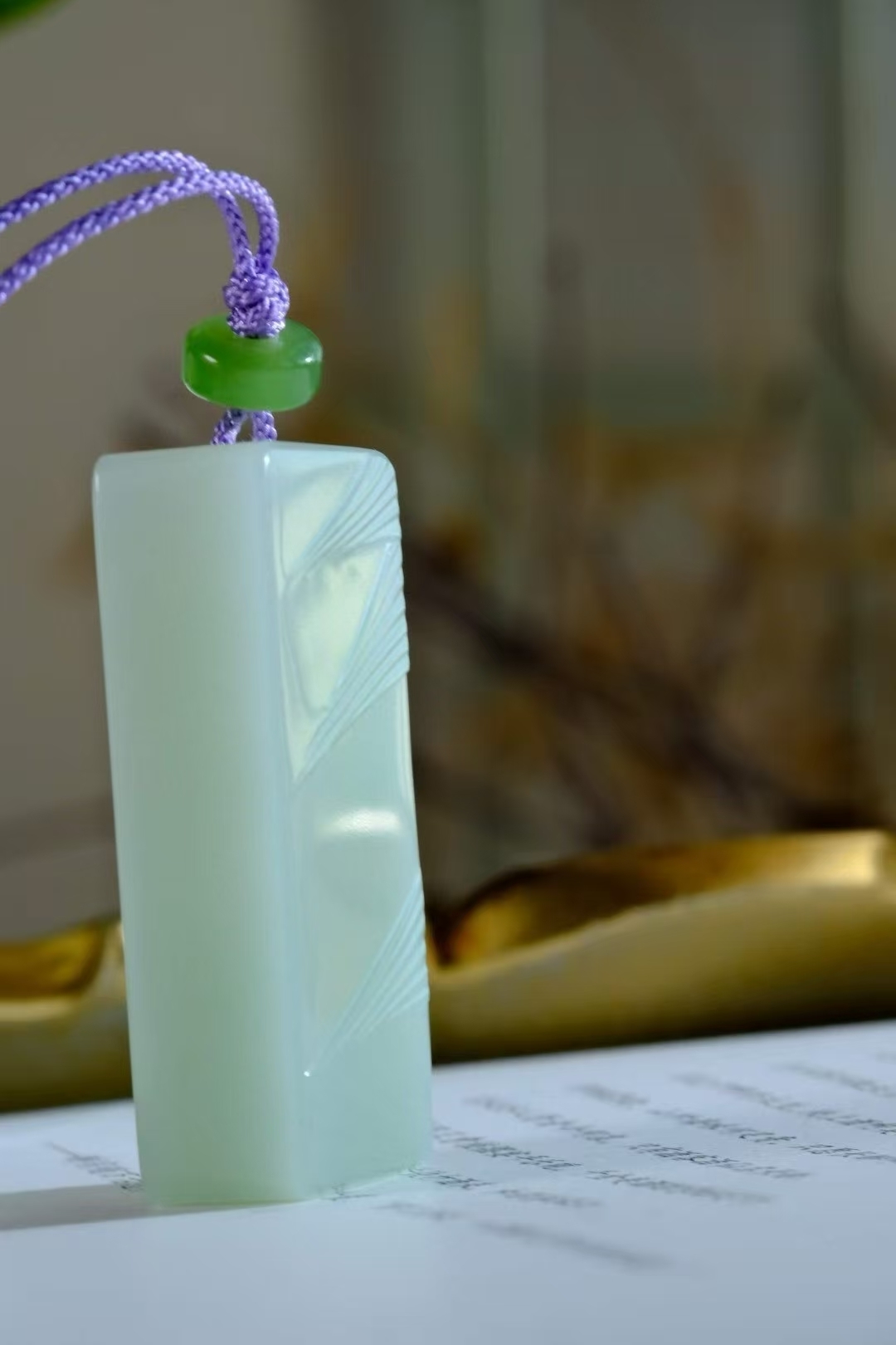 一塊超美的和田玉俄青料竹子牌,細膩油潤清雅,顏色極具特色。
