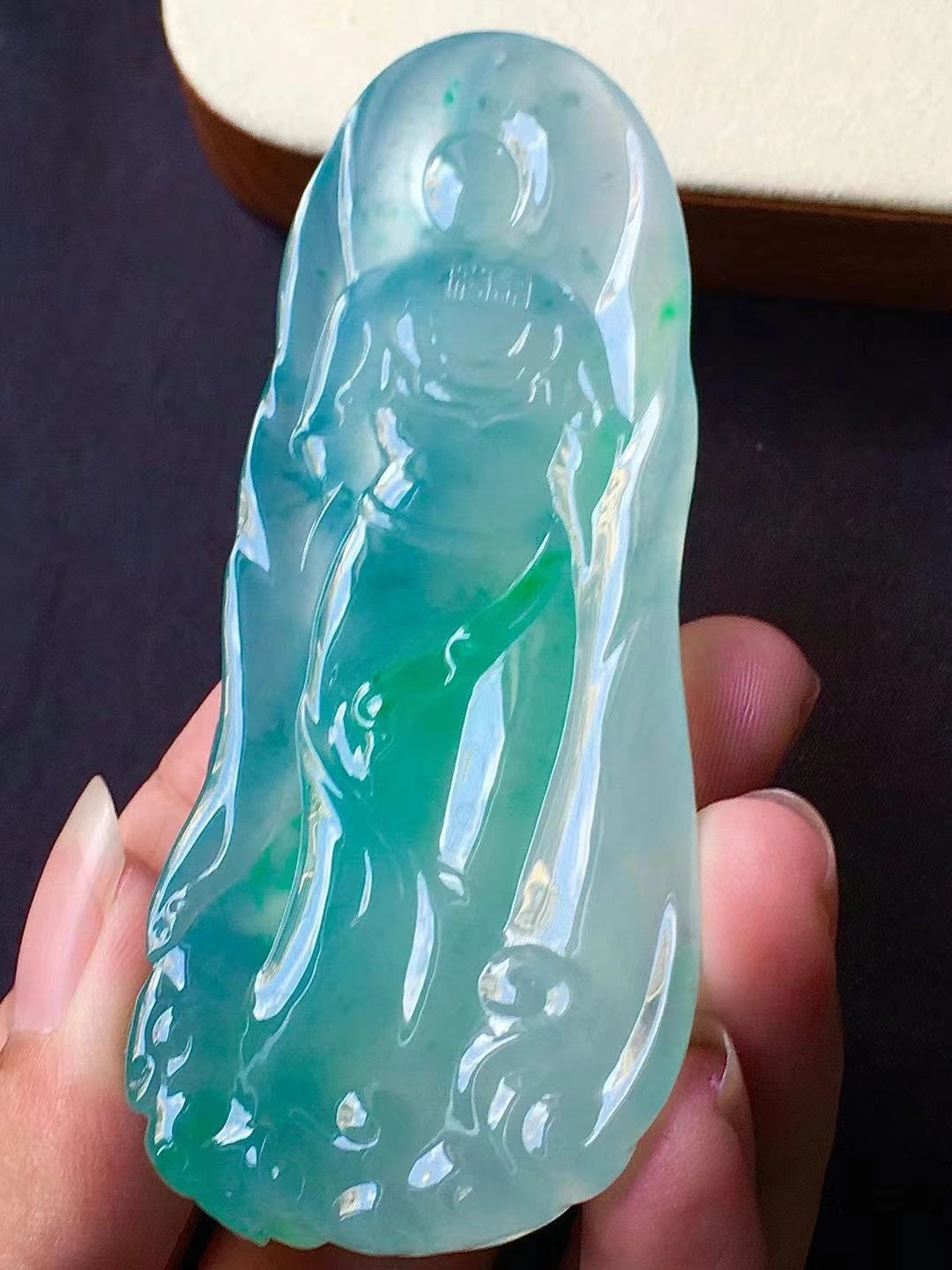 • 翡翠觀音牌,天然翡翠A玉, 緬甸玉, Jade, Jadeite