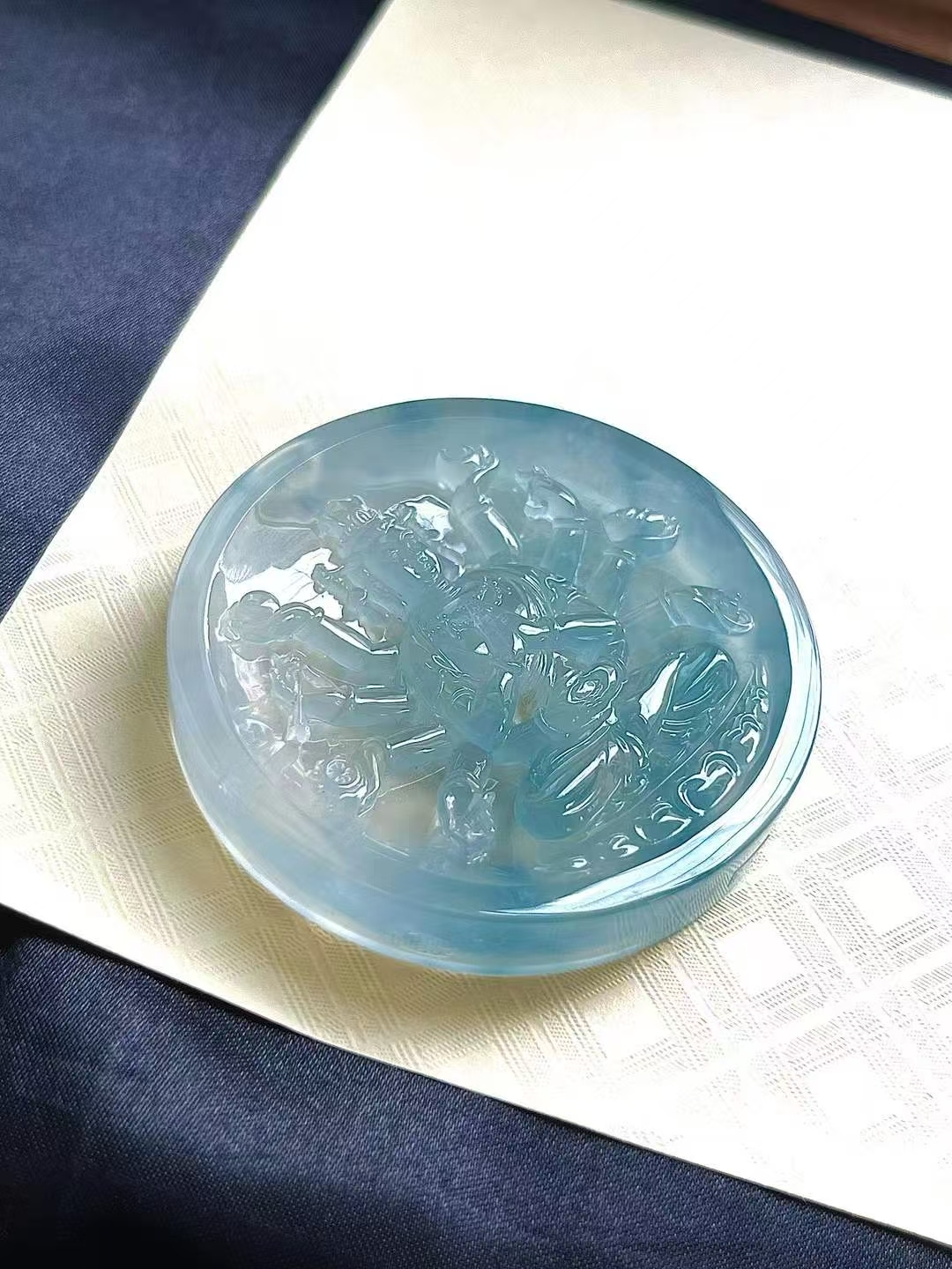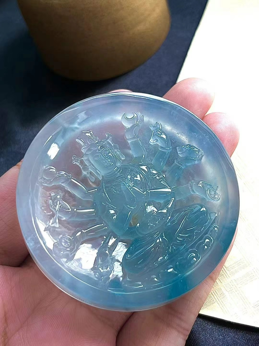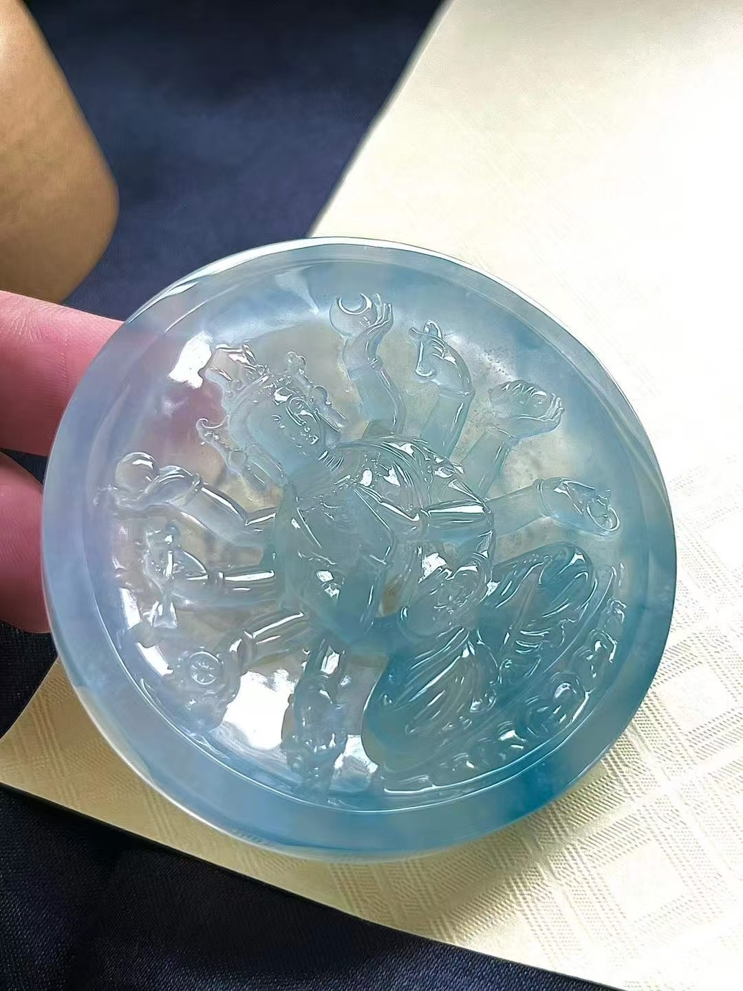 • 翡翠千手觀音牌 (57.1mm直徑),天然翡翠A玉, 緬甸玉, Jade, Jadeite