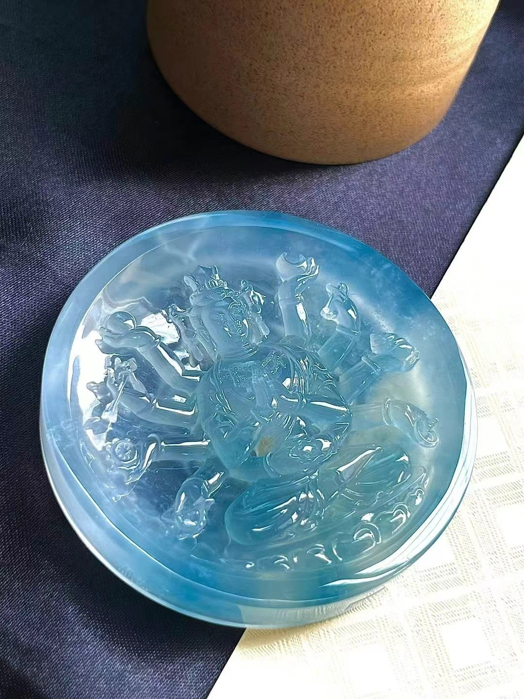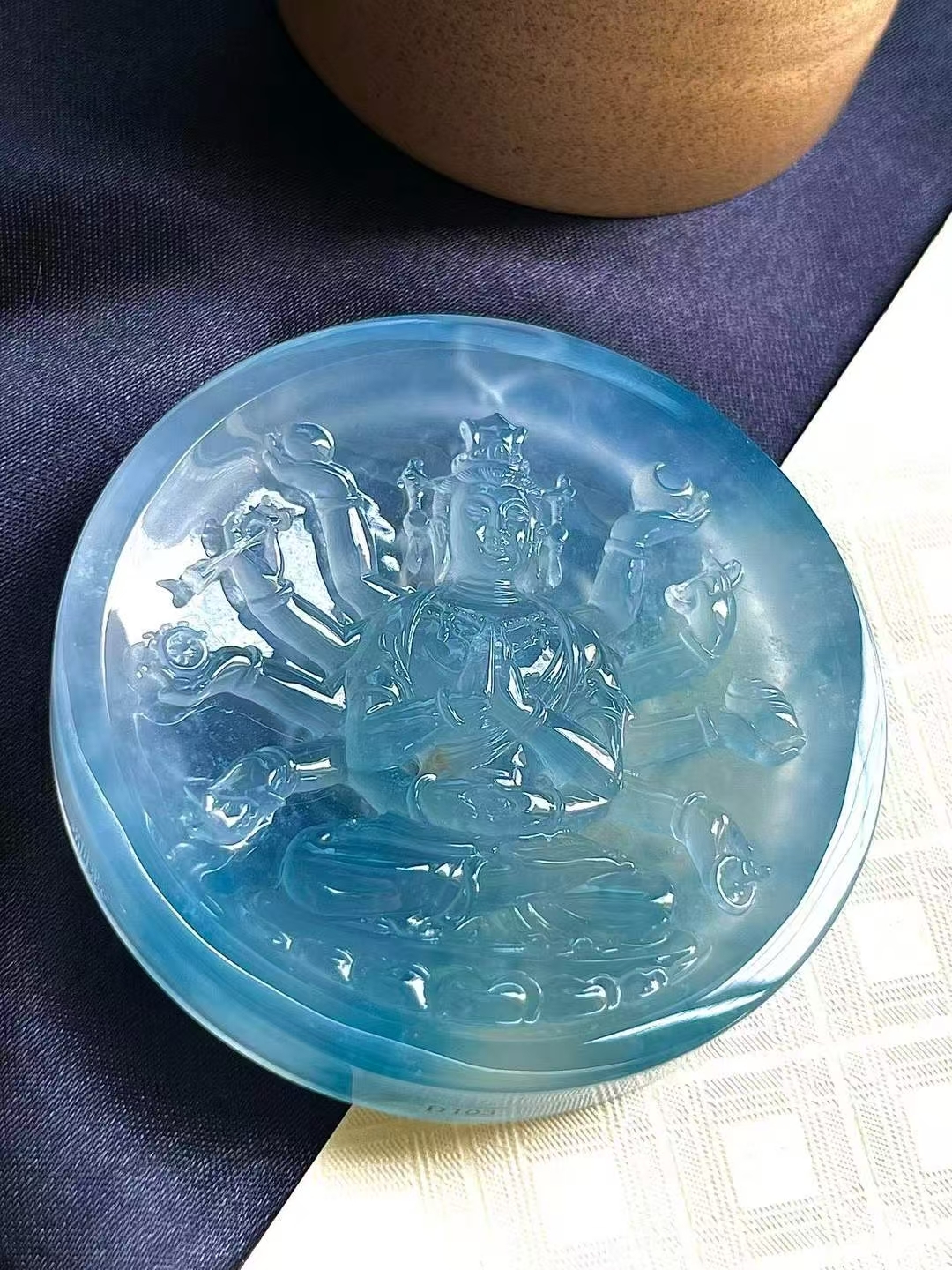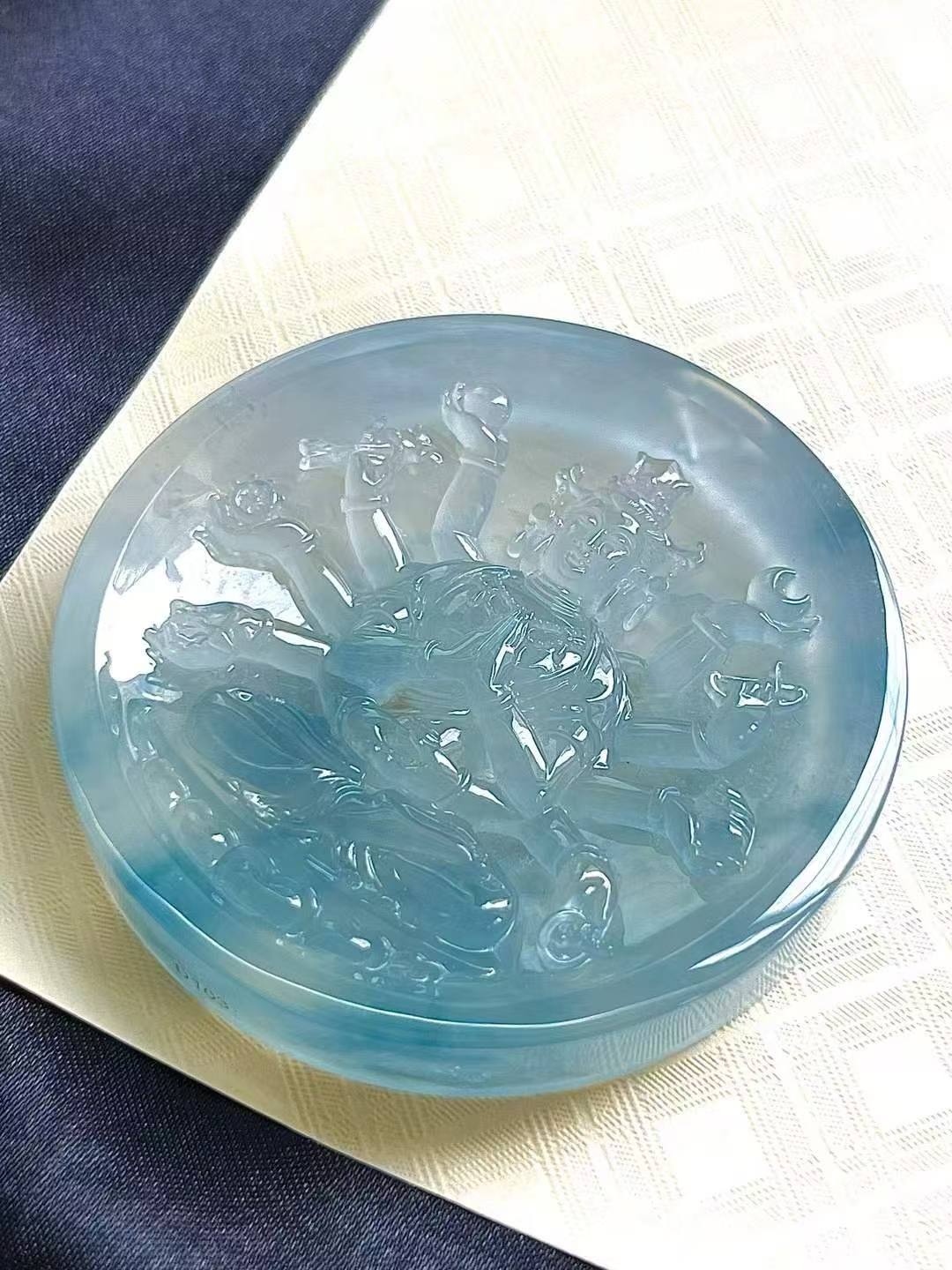• 翡翠千手觀音牌 (57.1mm直徑),天然翡翠A玉, 緬甸玉, Jade, Jadeite