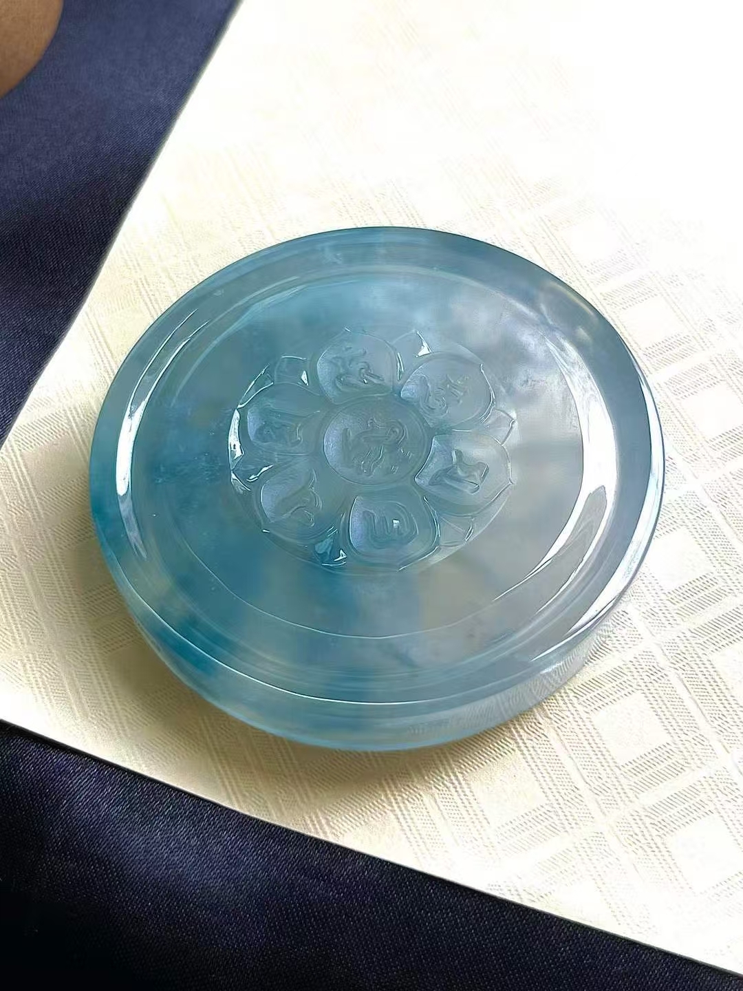天然翡翠A玉,冰潤水透,種老細膩起熒,厚庄。