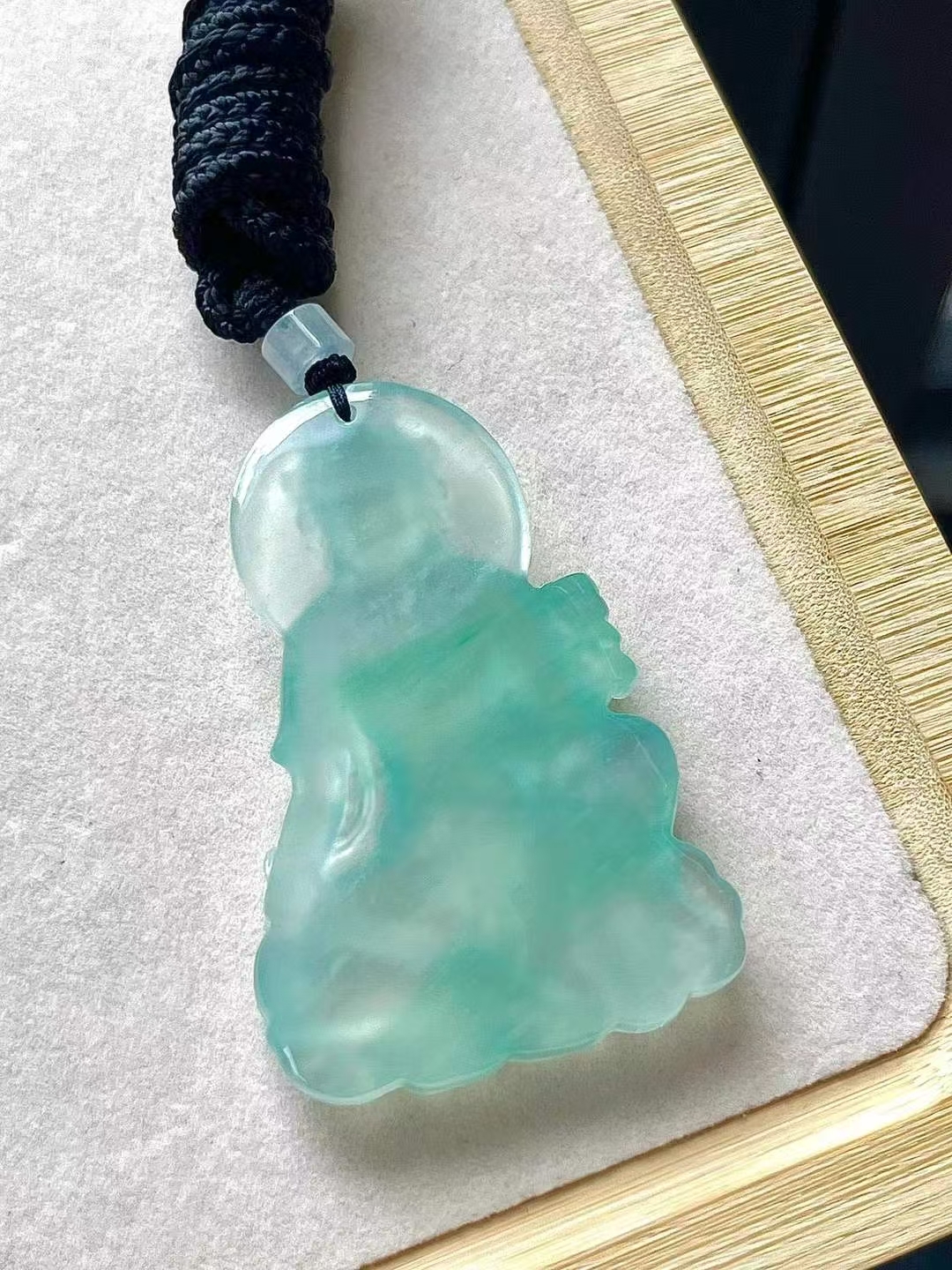 天然翡翠A玉,冰潤水透,種老細膩起熒。