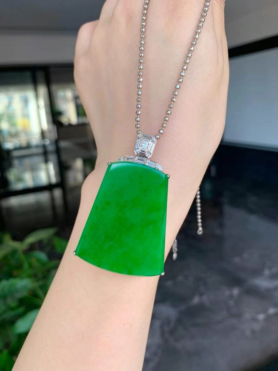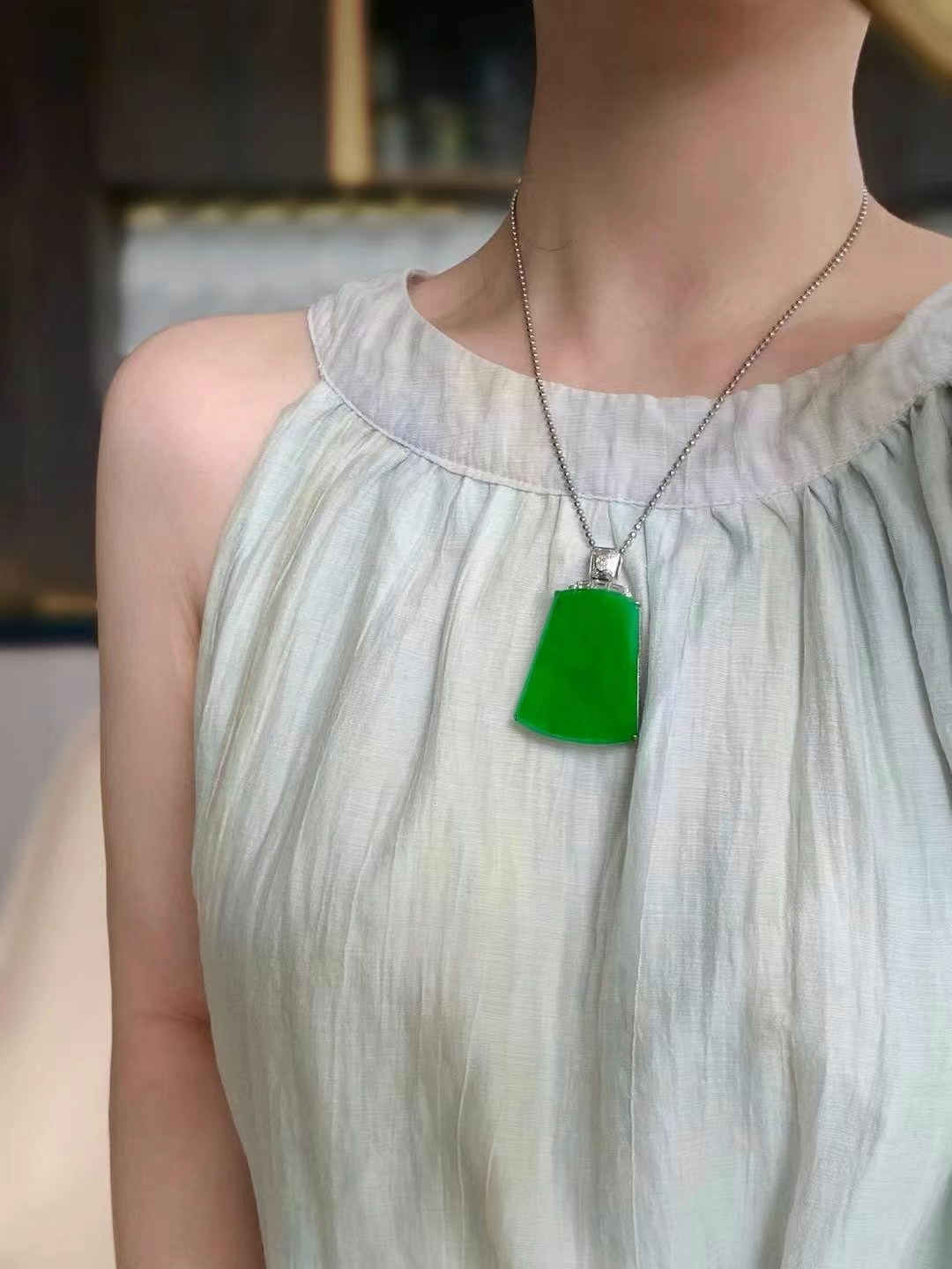 • 翡翠無事牌吊墜,天然翡翠A玉, 緬甸玉, Jade, Jadeite