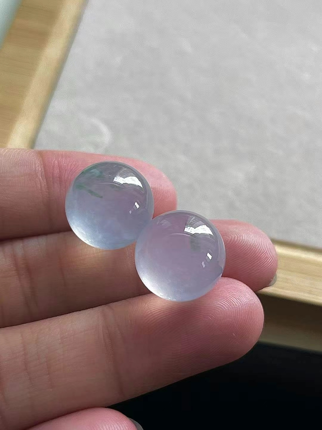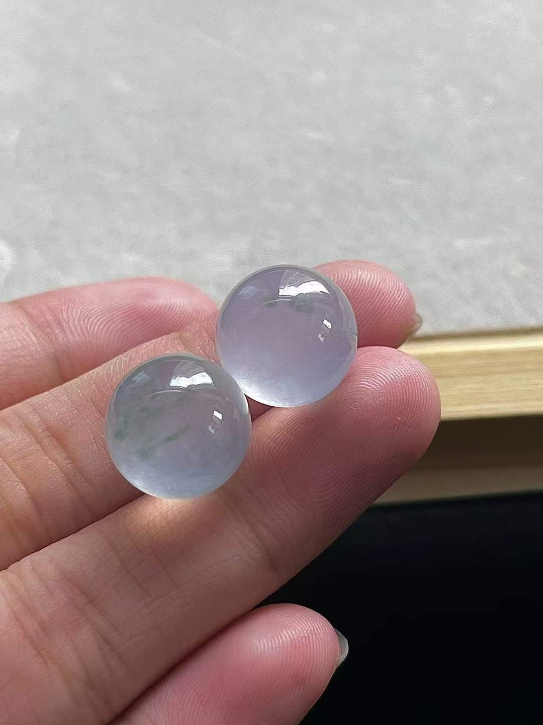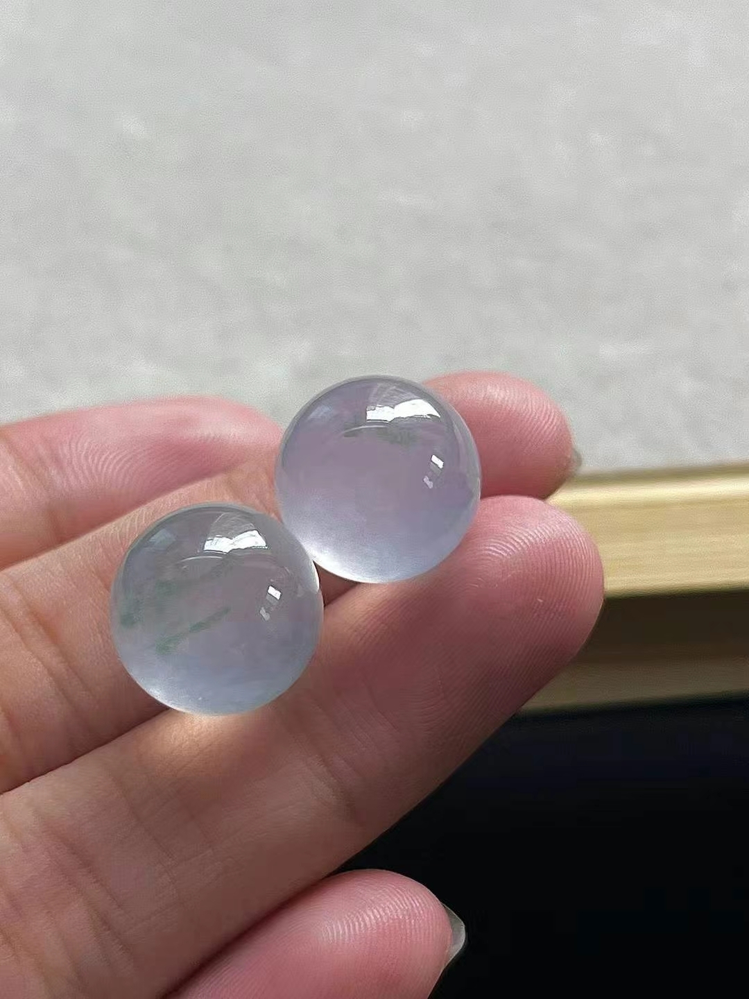 • 翡翠珠子一對 (13.4mm直徑),天然翡翠A玉, 緬甸玉, Jade, Jadeite