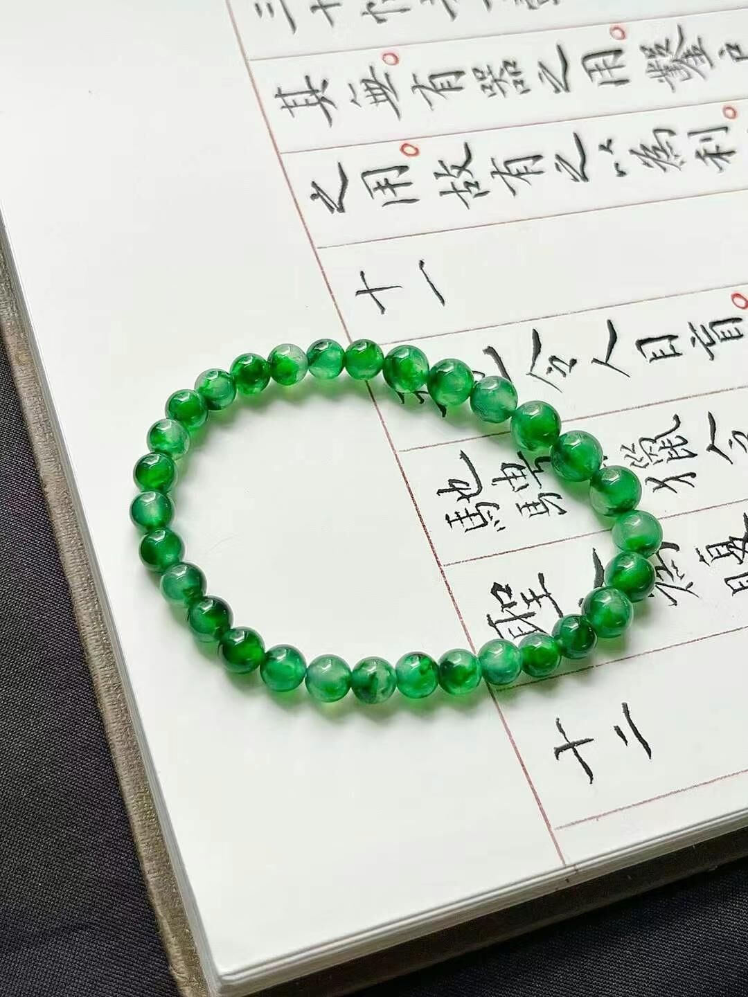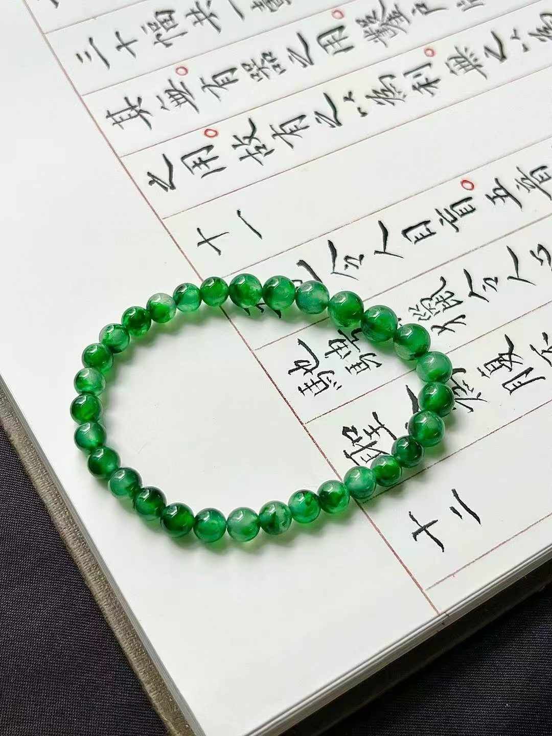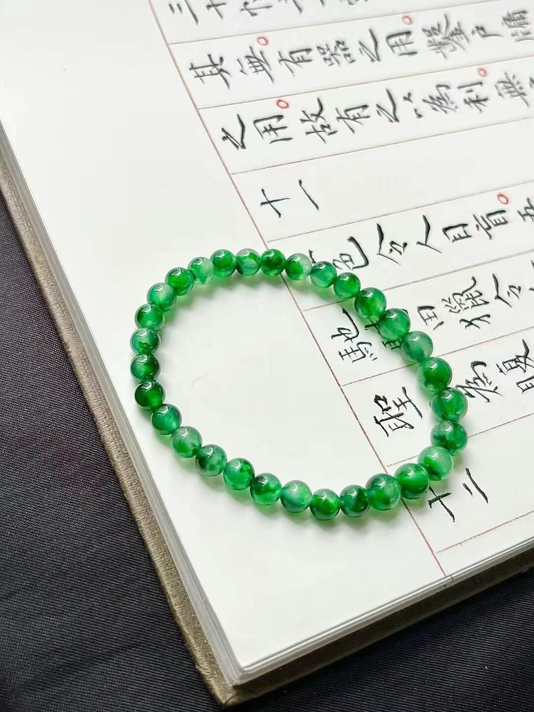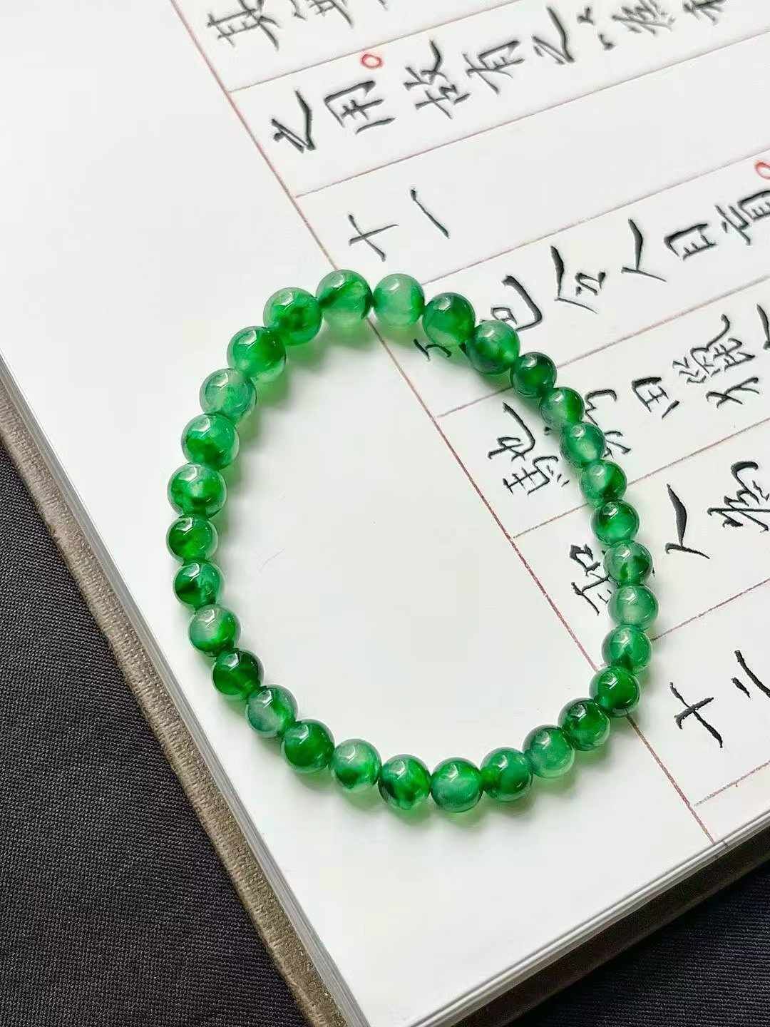 • 翡翠珠子手串 (5.4-6.9mm直徑),天然翡翠A玉, 緬甸玉, Jade, Jadeite