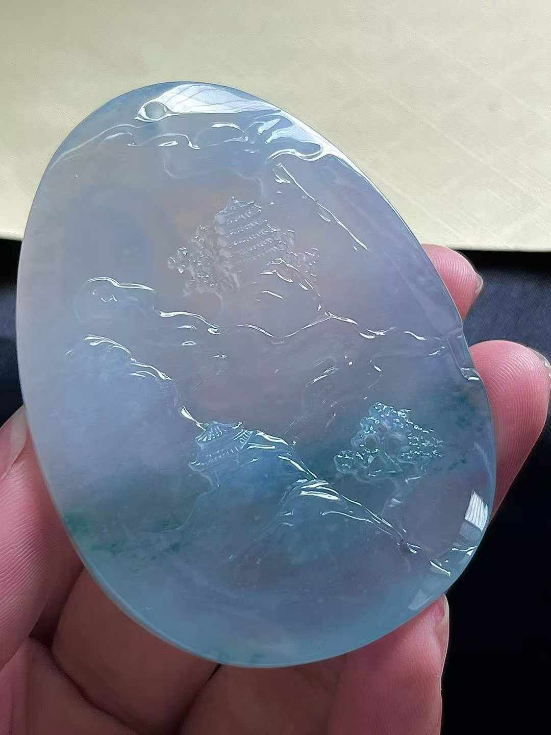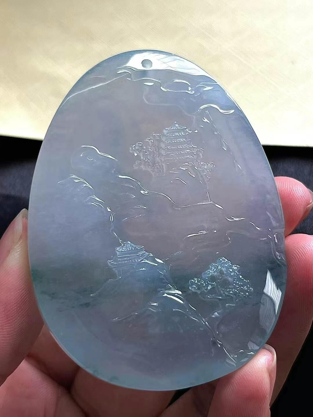 天然翡翠A玉,冰潤水透,種老細膩起熒。