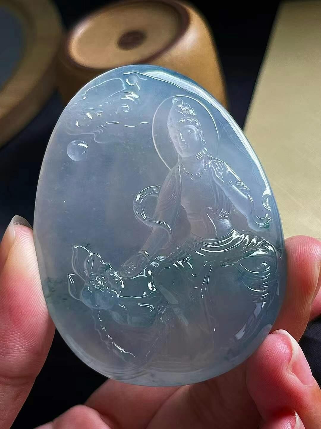 • 翡翠觀音牌,天然翡翠A玉, 緬甸玉, Jade, Jadeite
