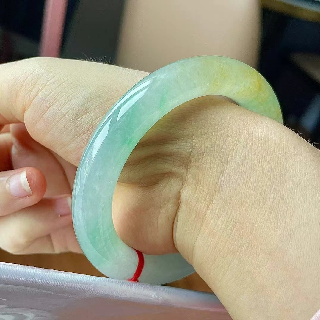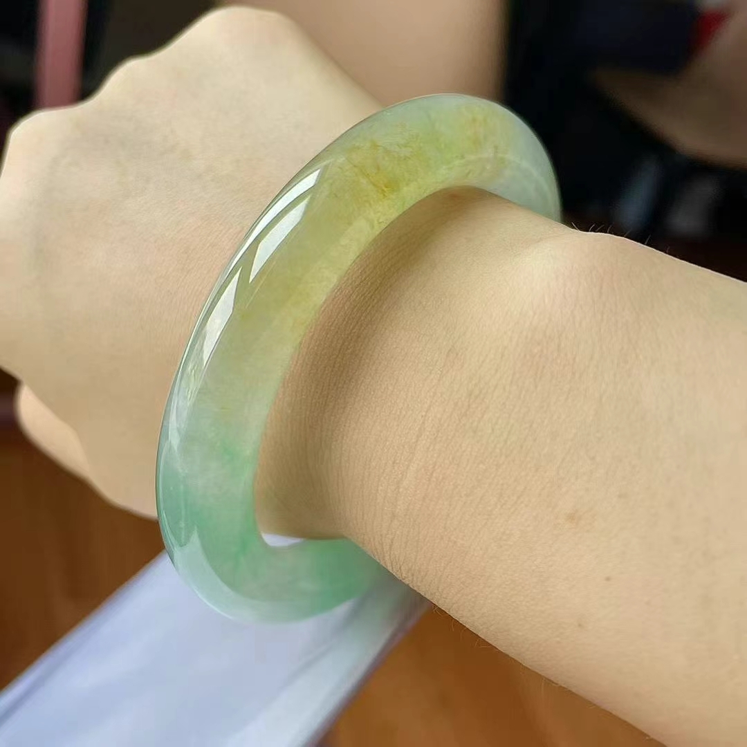 765510 57mm高冰黃加綠翡翠圓條手鐲