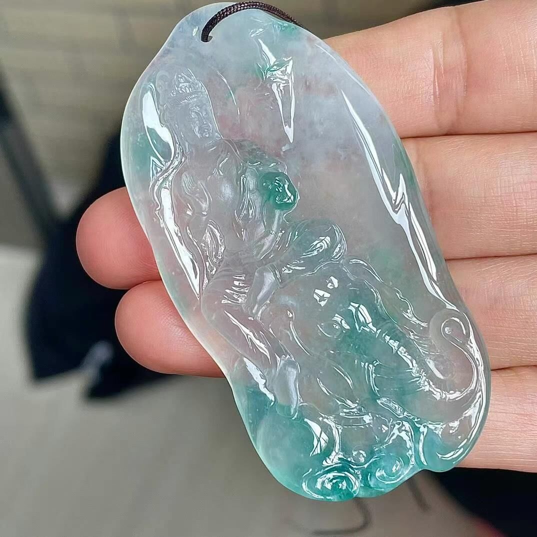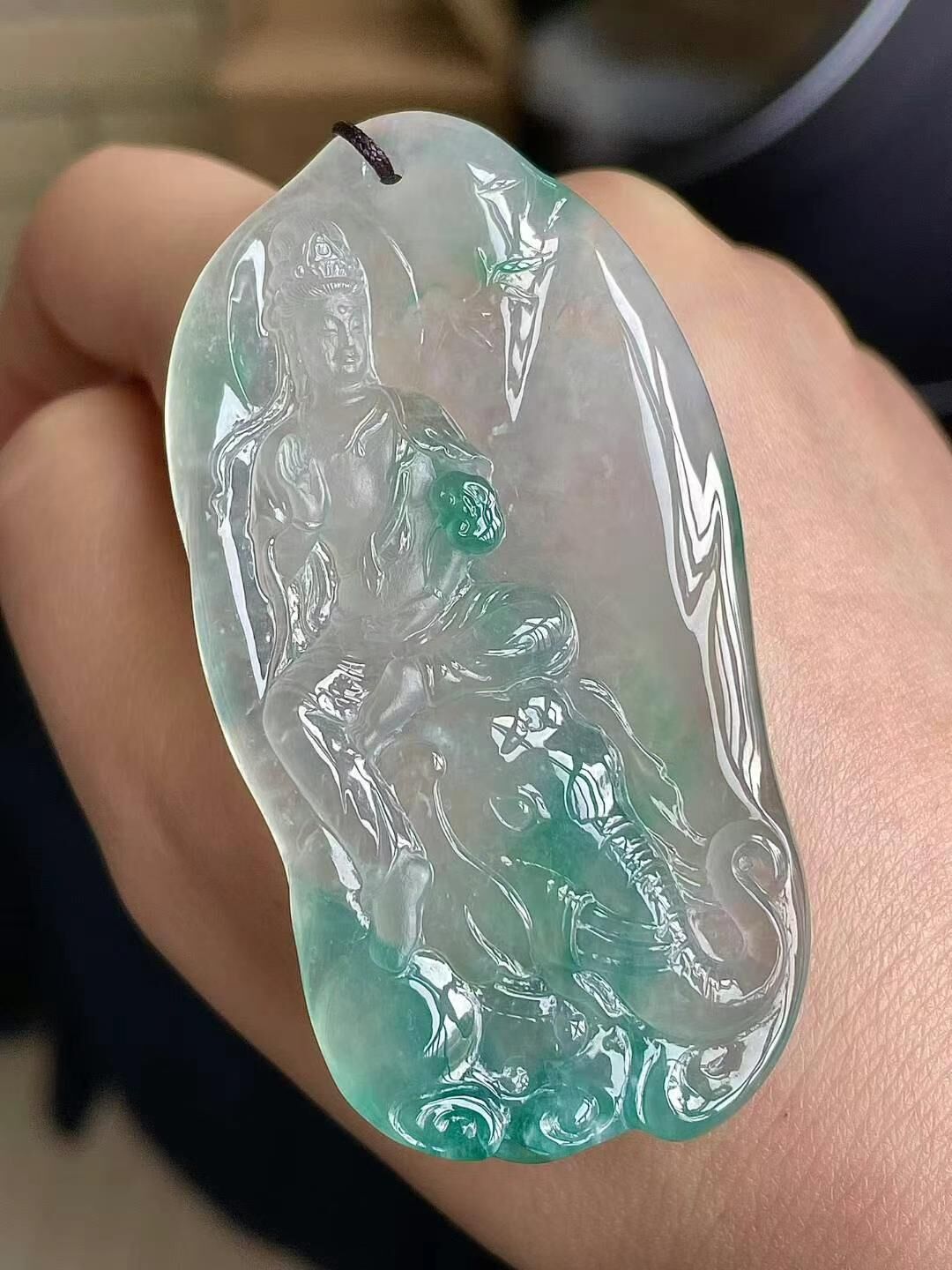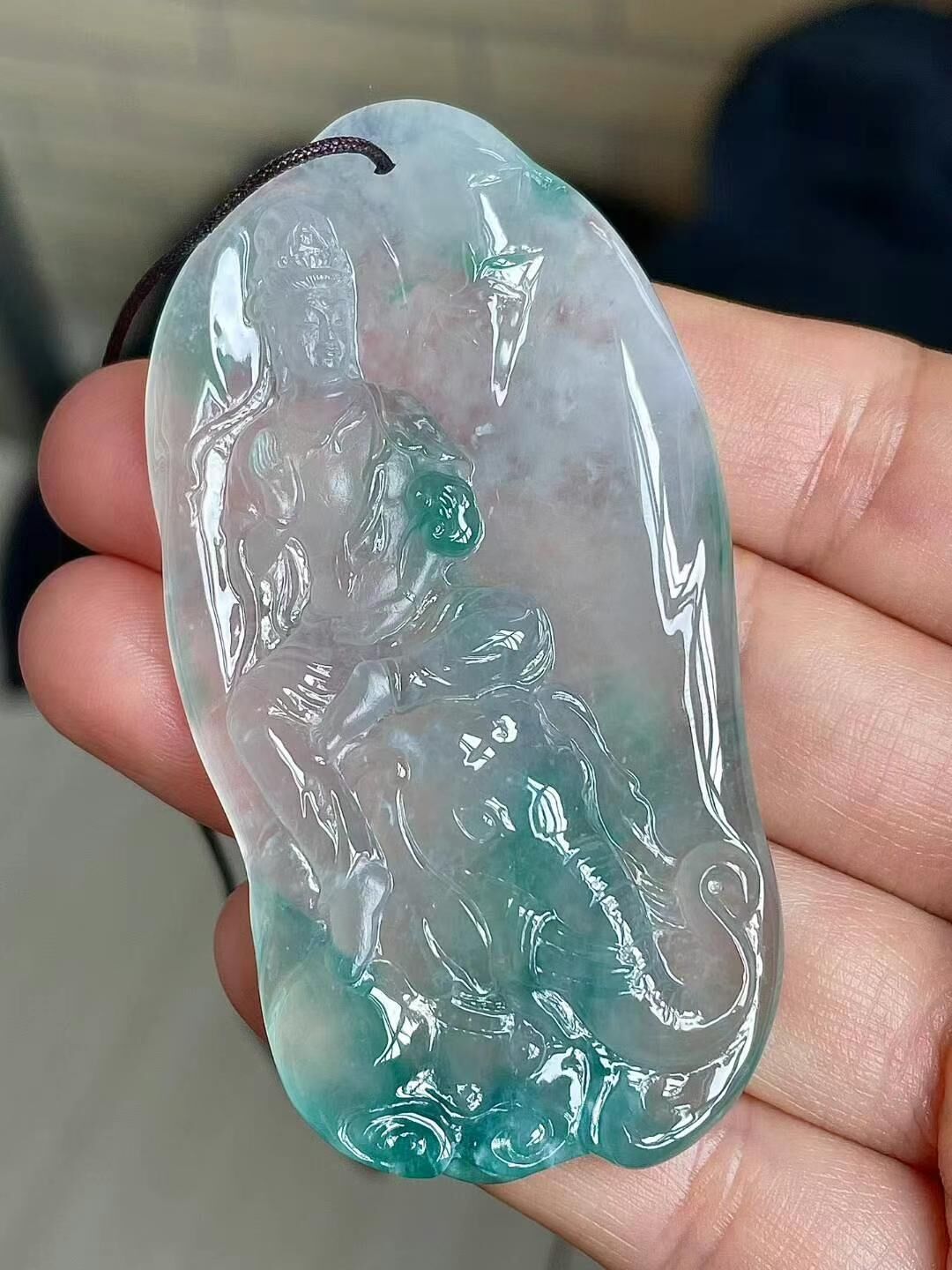 • 翡翠高冰飄花普賢菩薩,天然翡翠A玉, 緬甸玉, Jade, Jadeite