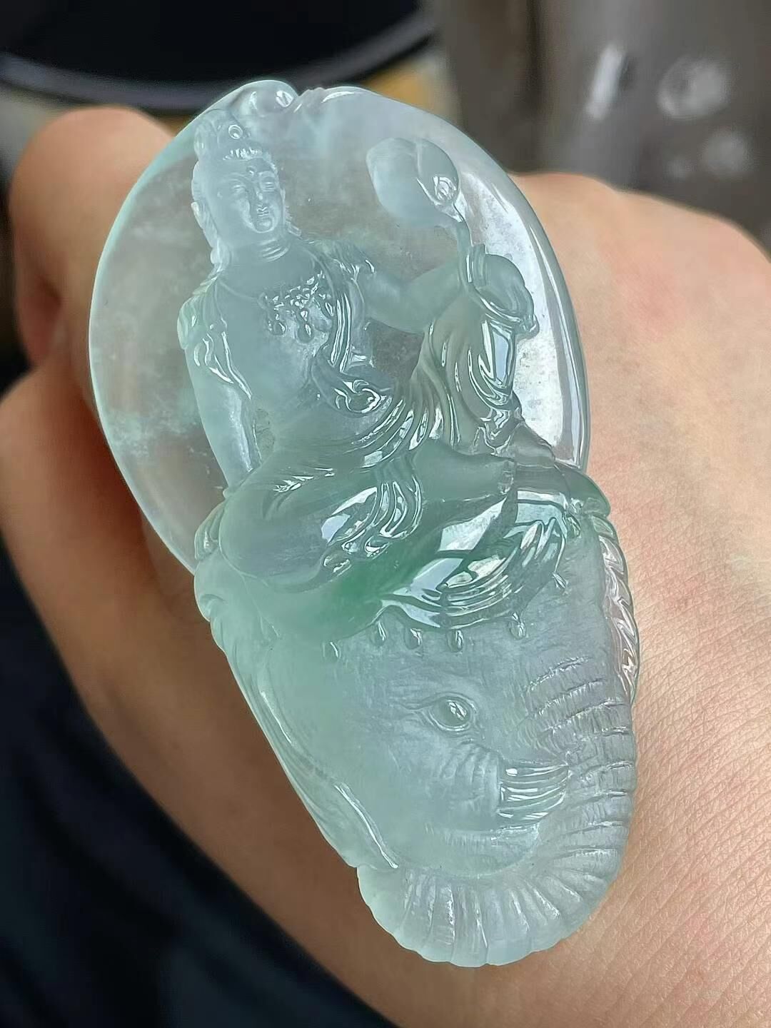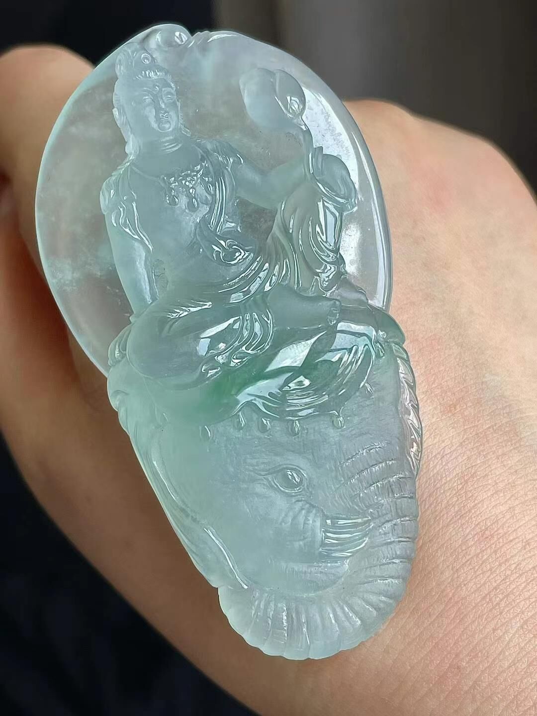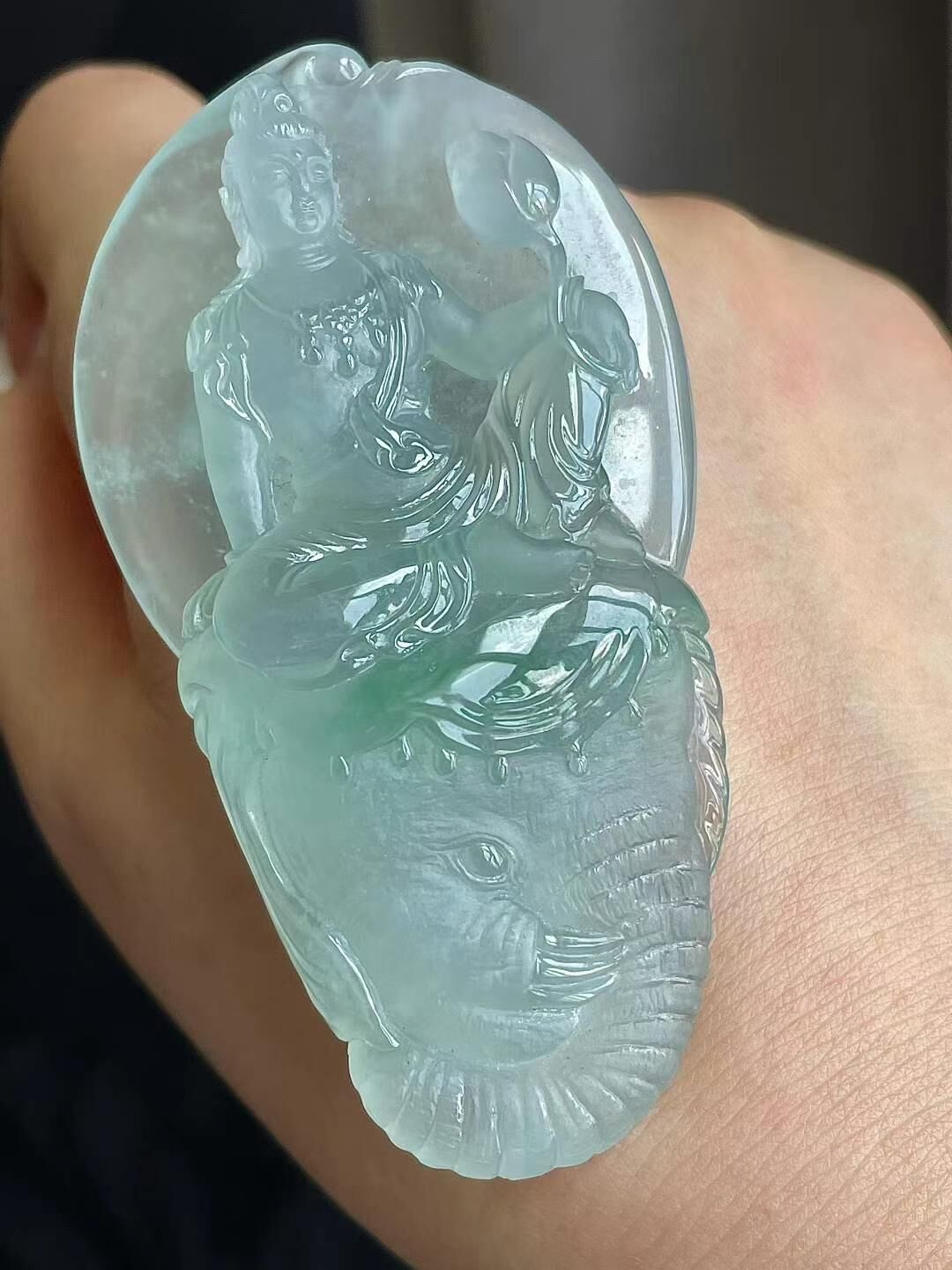 765514 翡翠高冰普賢菩薩吊墜