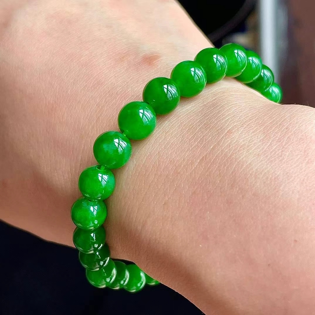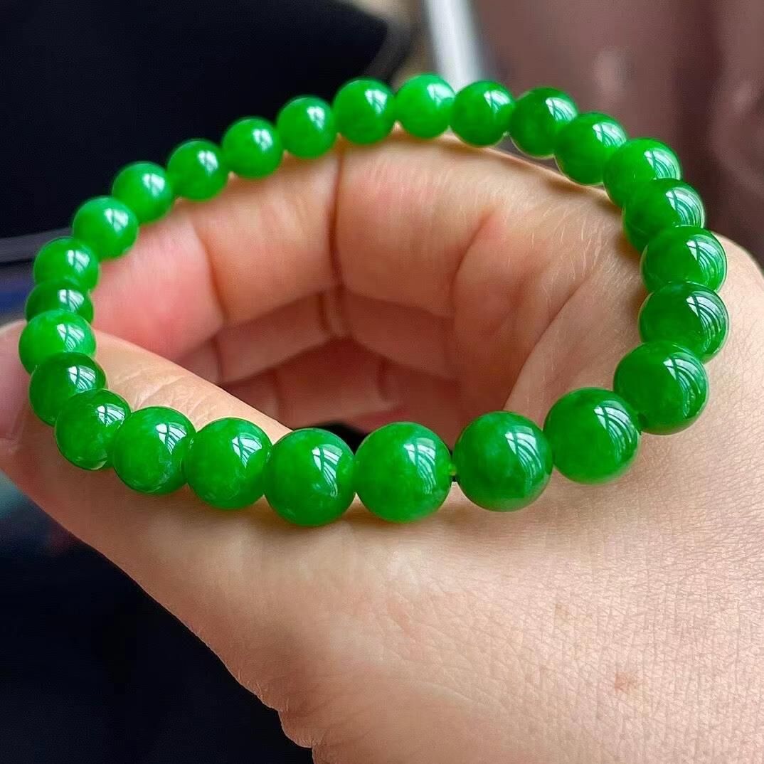 76553 翡翠冰辣綠手串