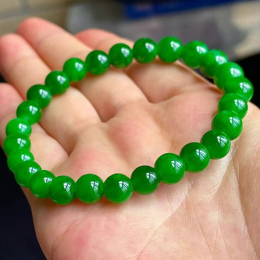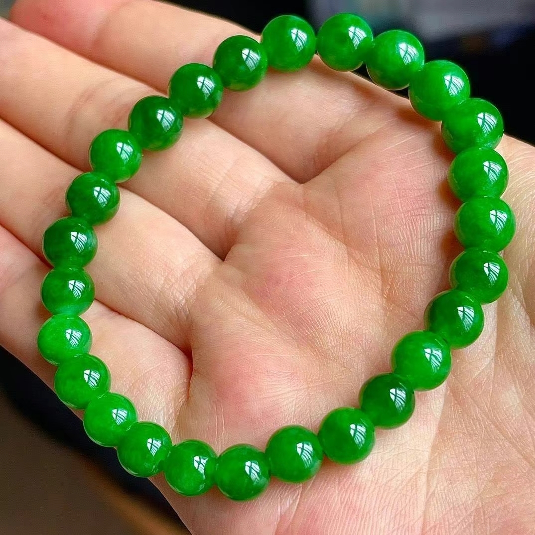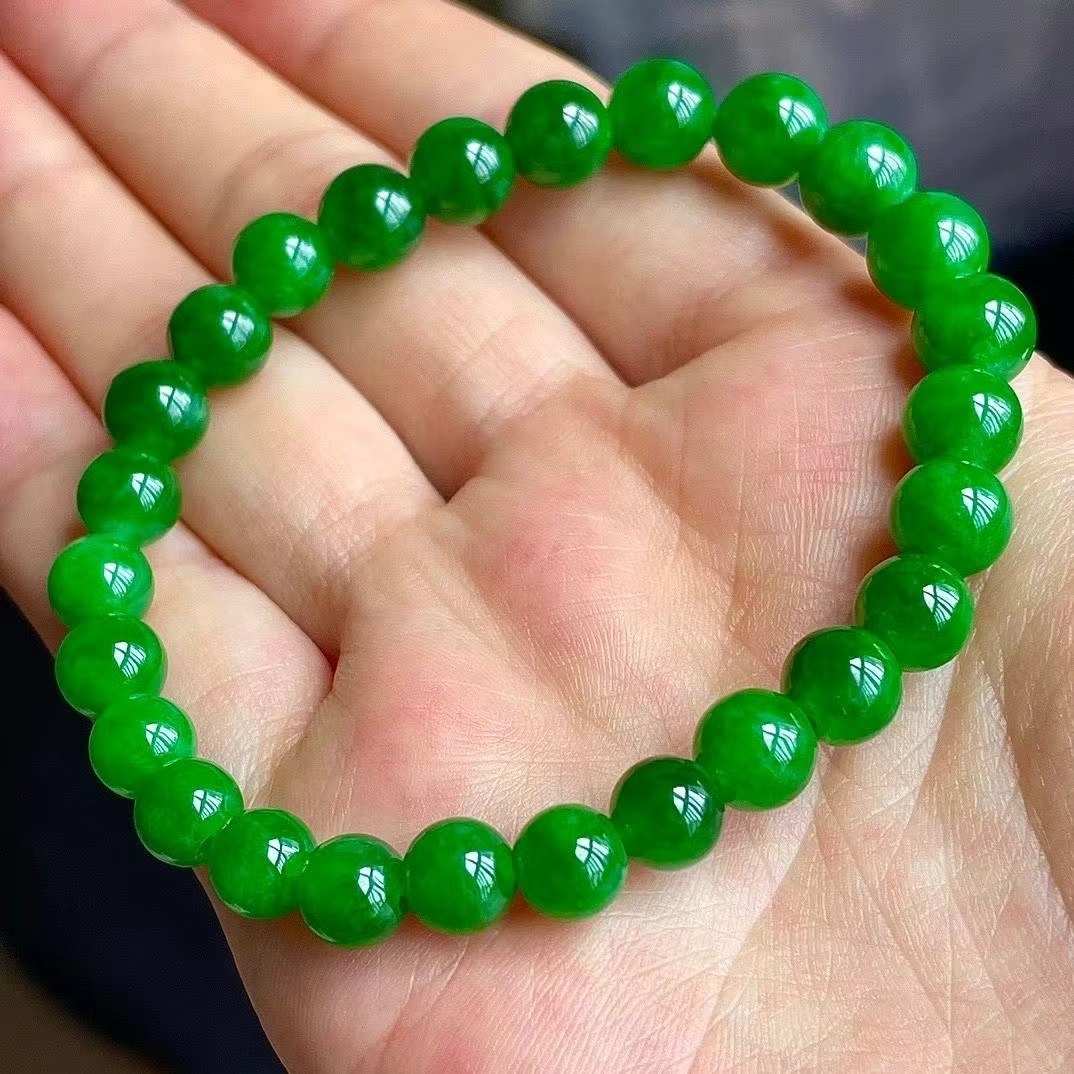 • 翡翠冰辣綠手串 (6.3-7.9mm直徑),天然翡翠A玉, 緬甸玉, Jade, Jadeite