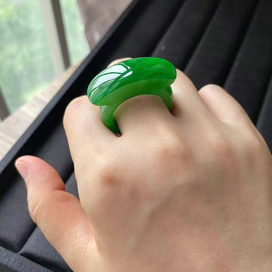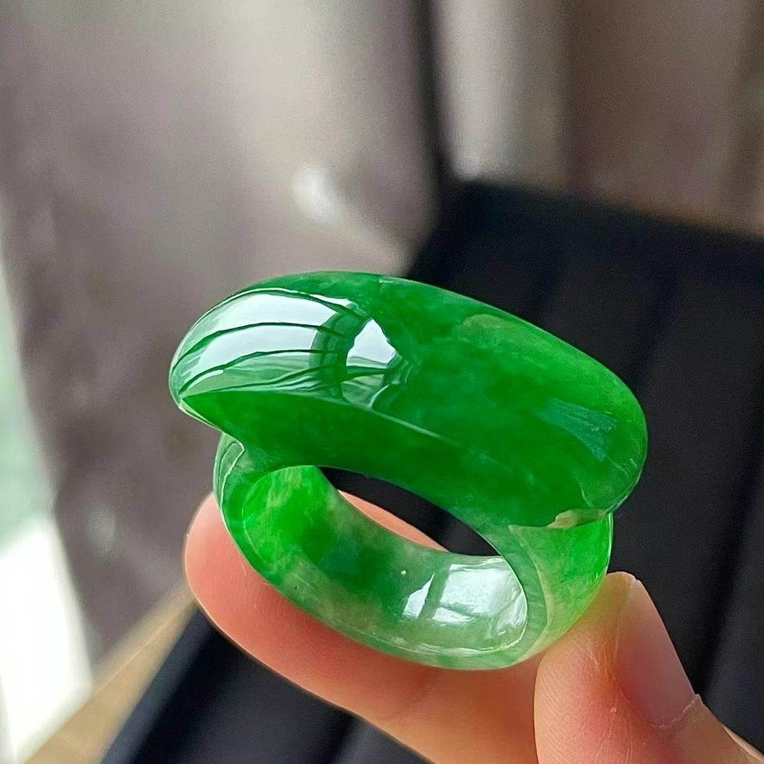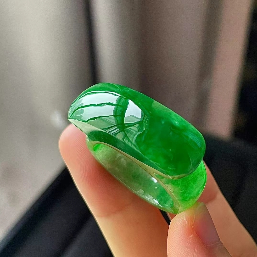 • 翡翠冰種辣綠扳指 (港圈 23號),天然翡翠A玉, 緬甸玉, Jade, Jadeite