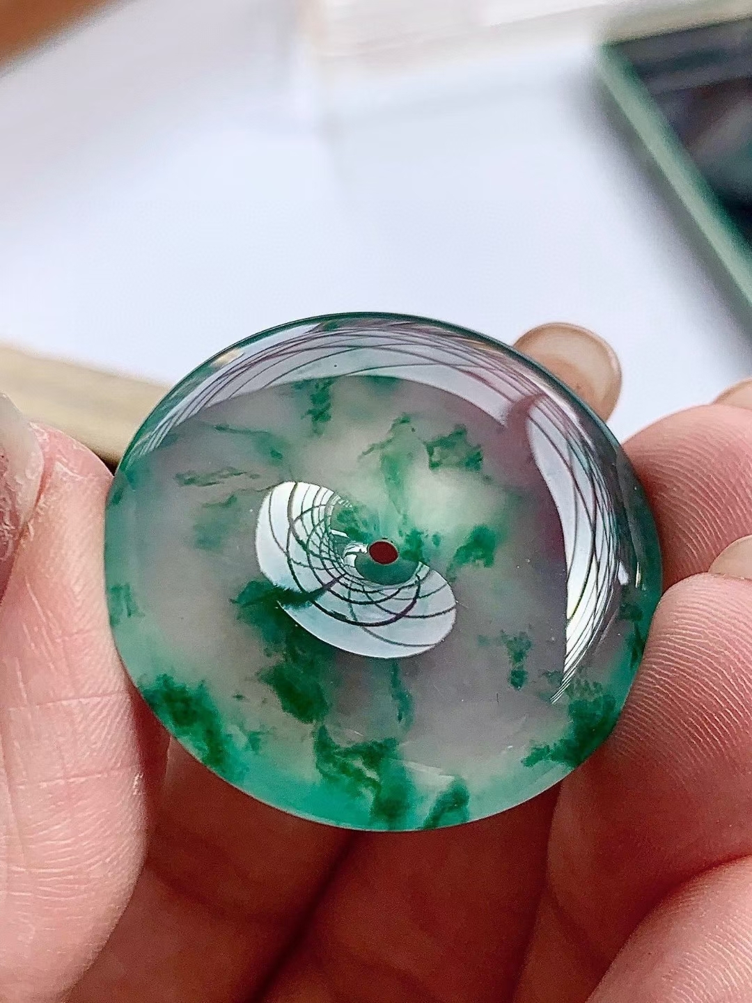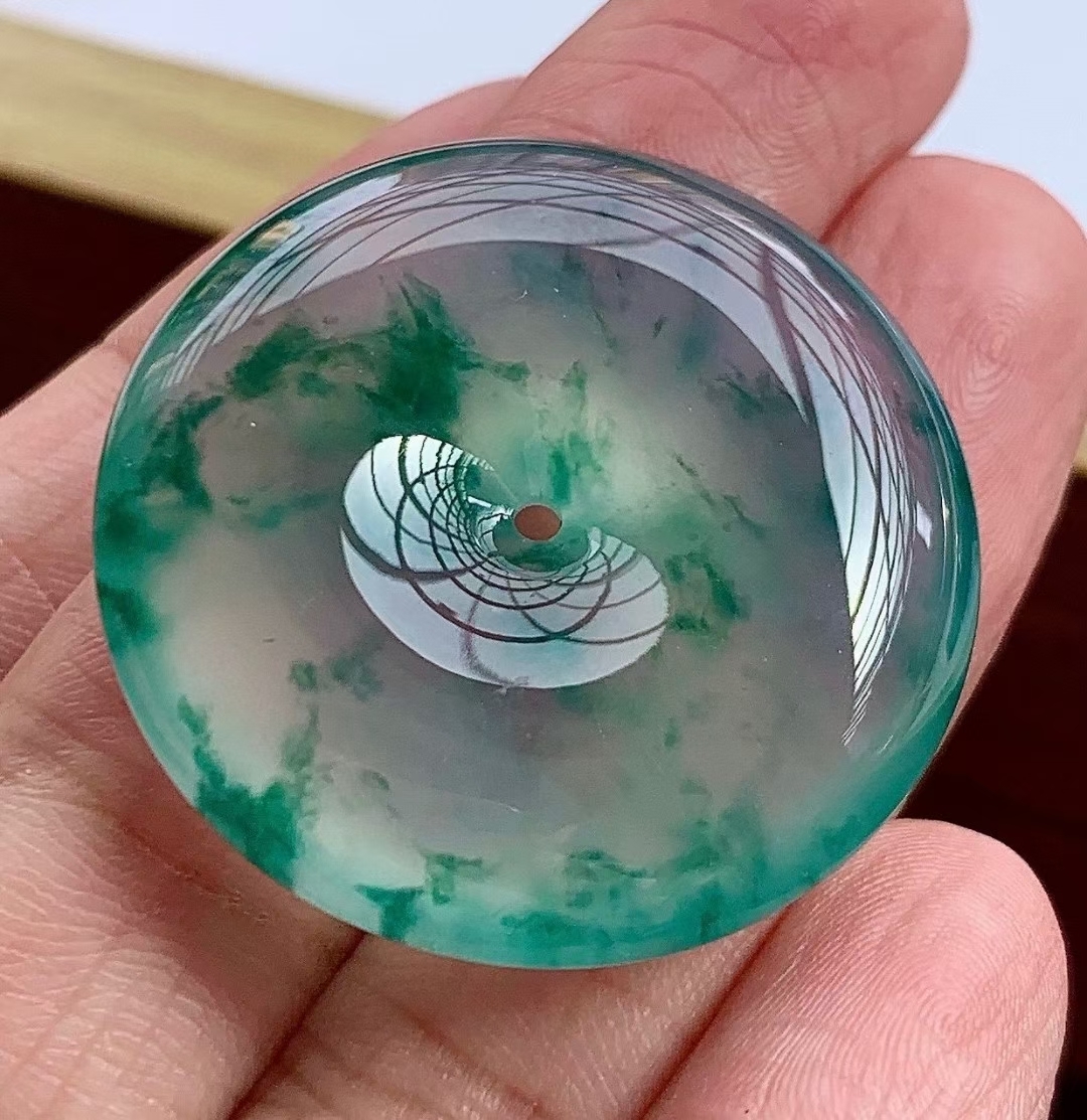 • 翡翠高冰藍花平安扣,天然翡翠A玉, 緬甸玉, Jade, Jadeite