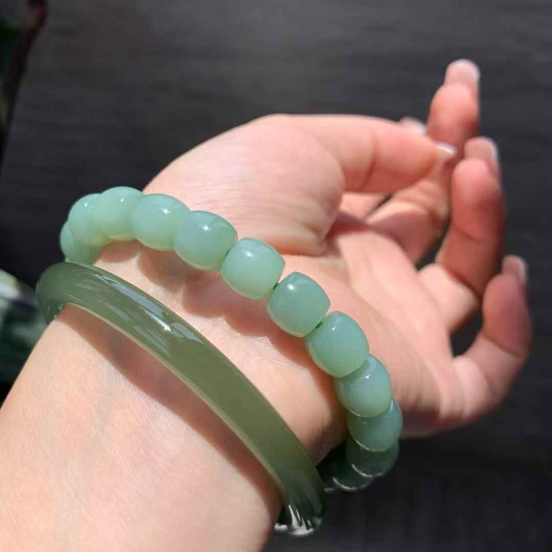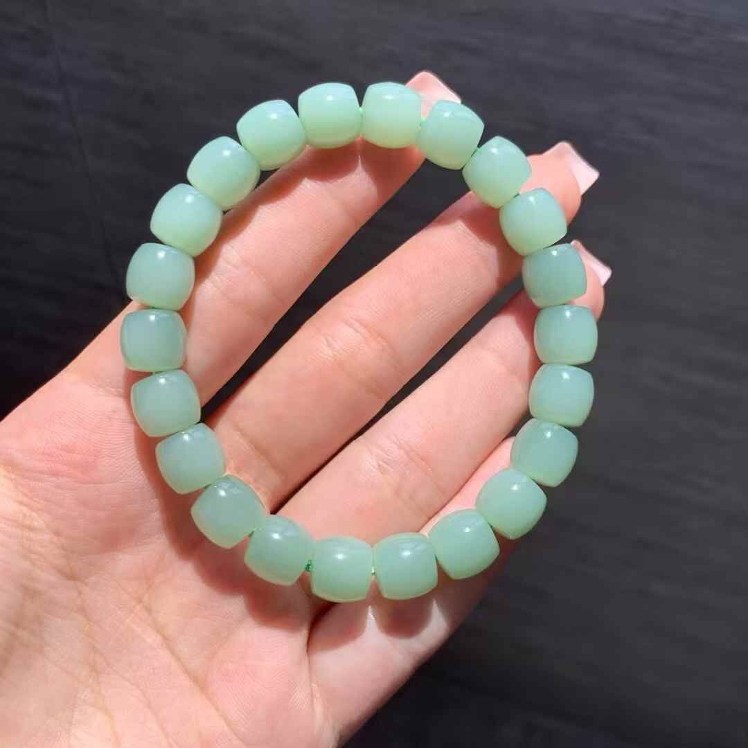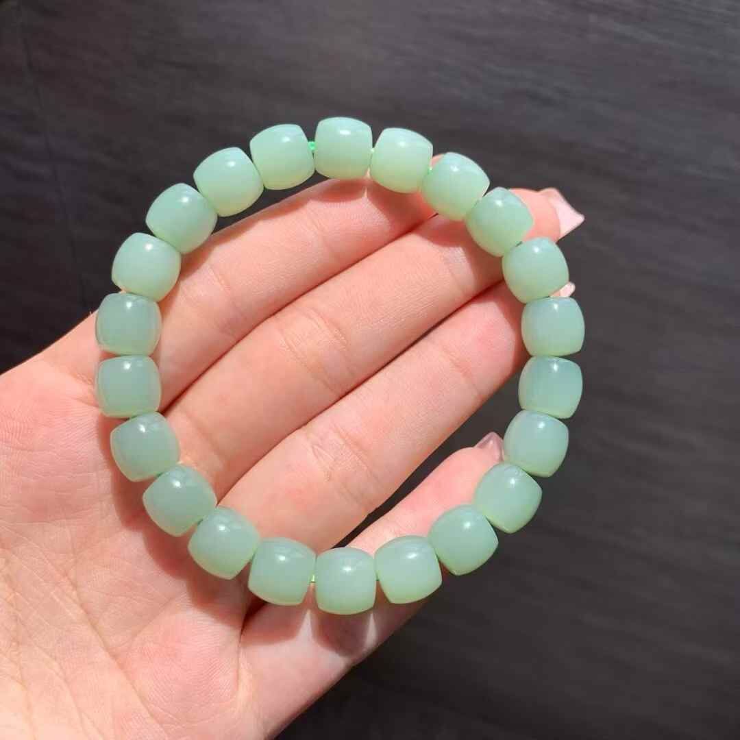 稀缺精品!和田玉粉青無結構直切手串,超粉嫩的清雅脫俗的色底,不灰不暗,俄羅斯碧玉老料子,細膩過燈無結構,脂粉渾厚,玉質乾淨,瓷糯感十足,顆顆精選無瑕疵。