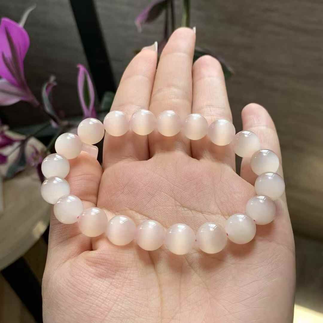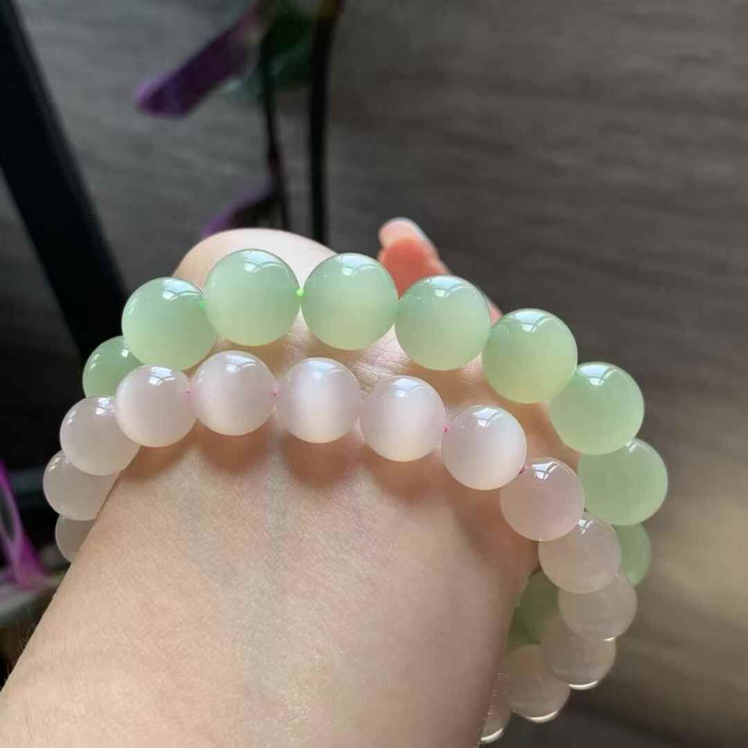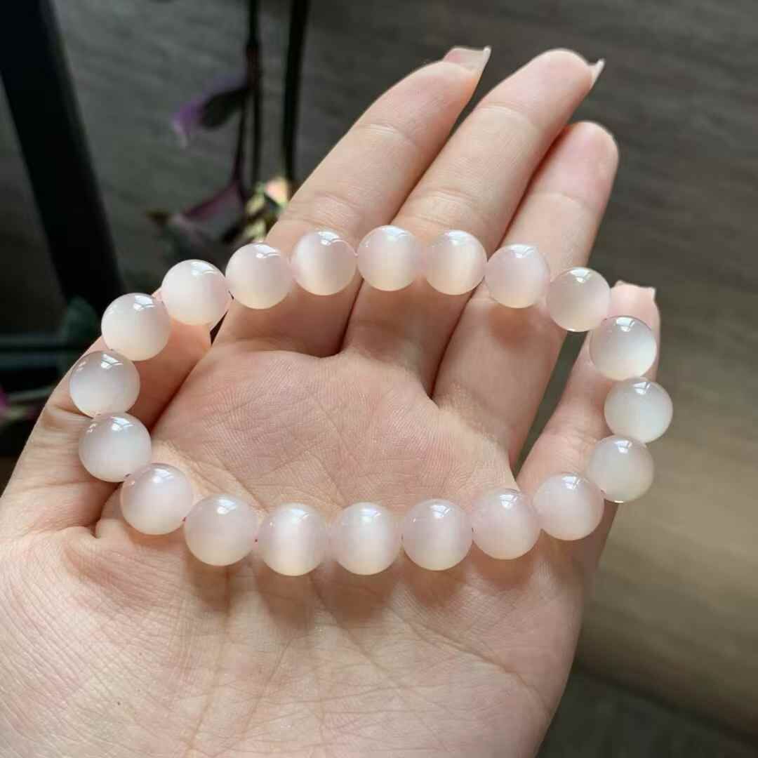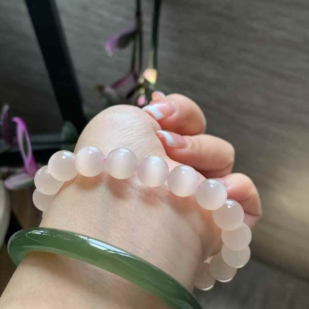 • 和田玉藕粉貓眼手串,天然和田玉軟玉