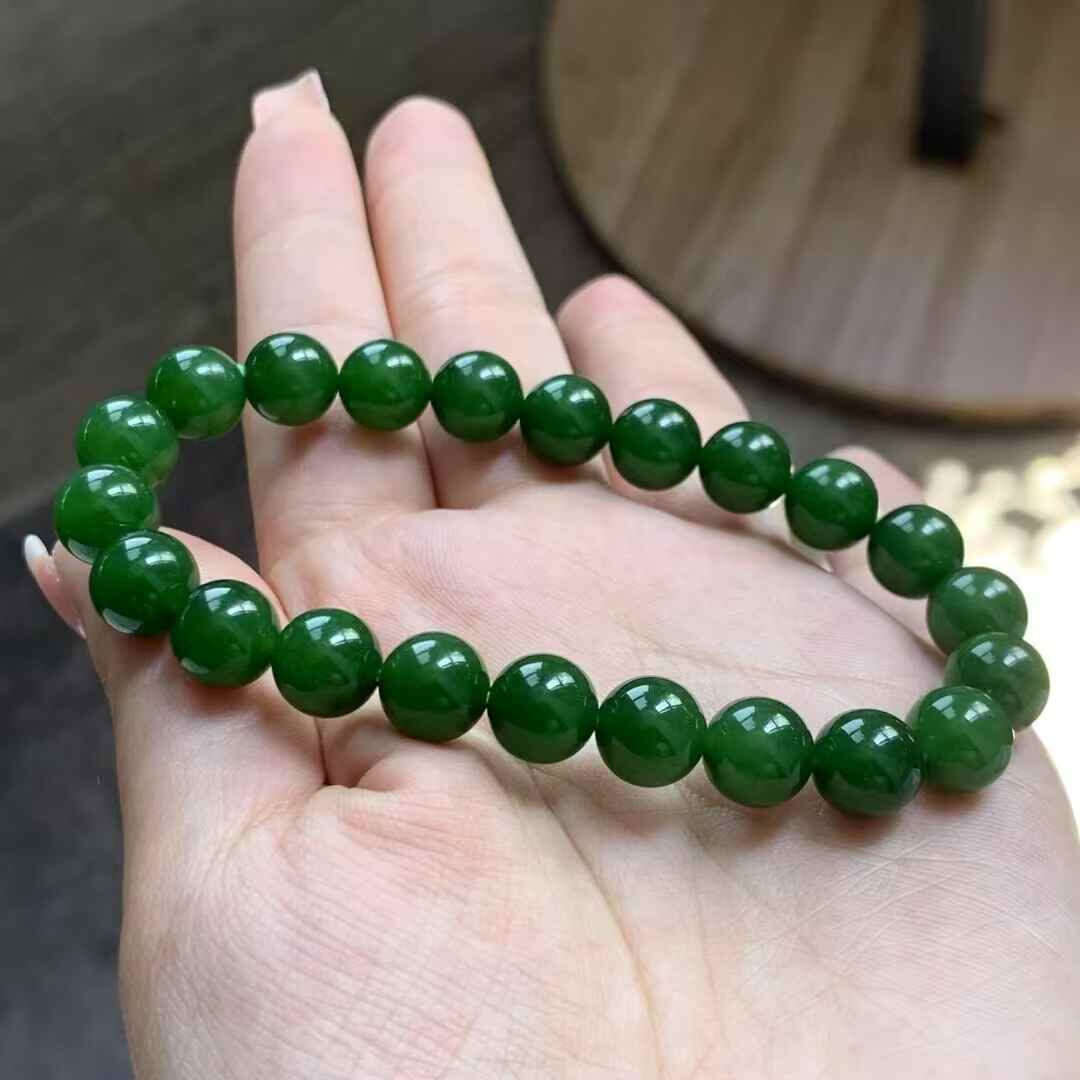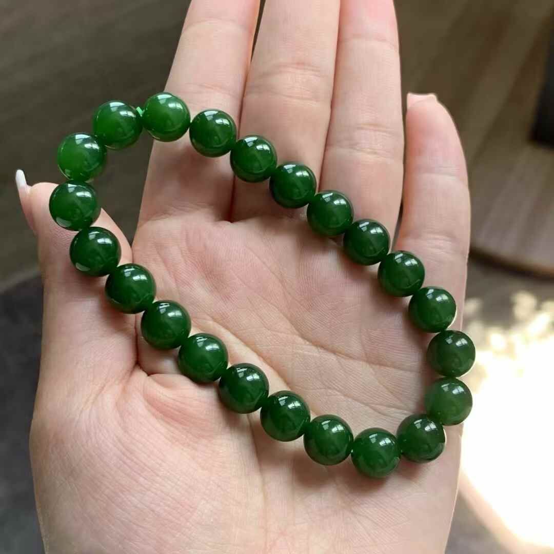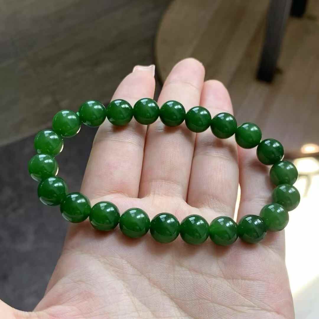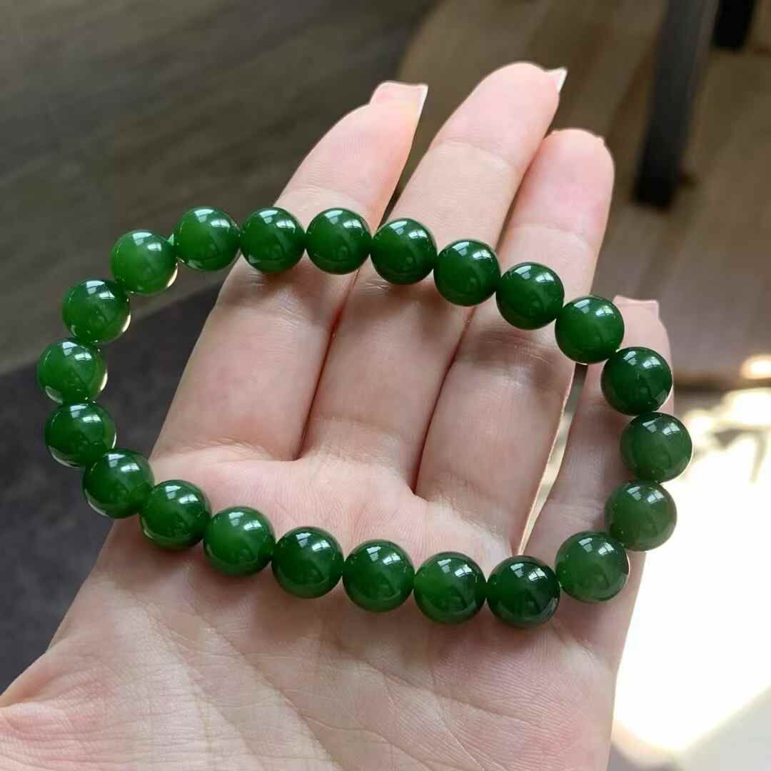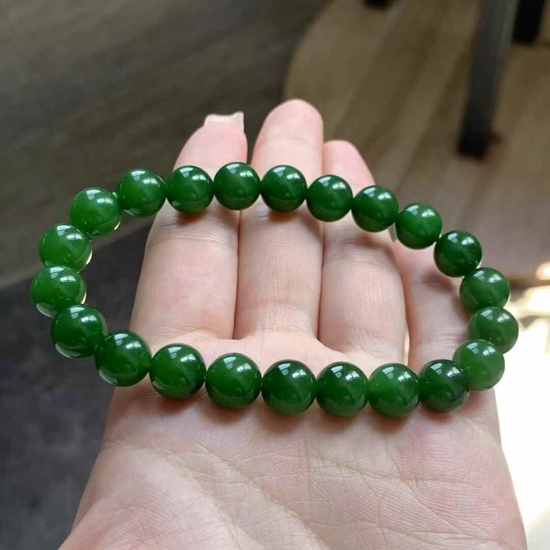 • 和田玉老料碧玉手串 (9mm直徑),天然和田玉軟玉