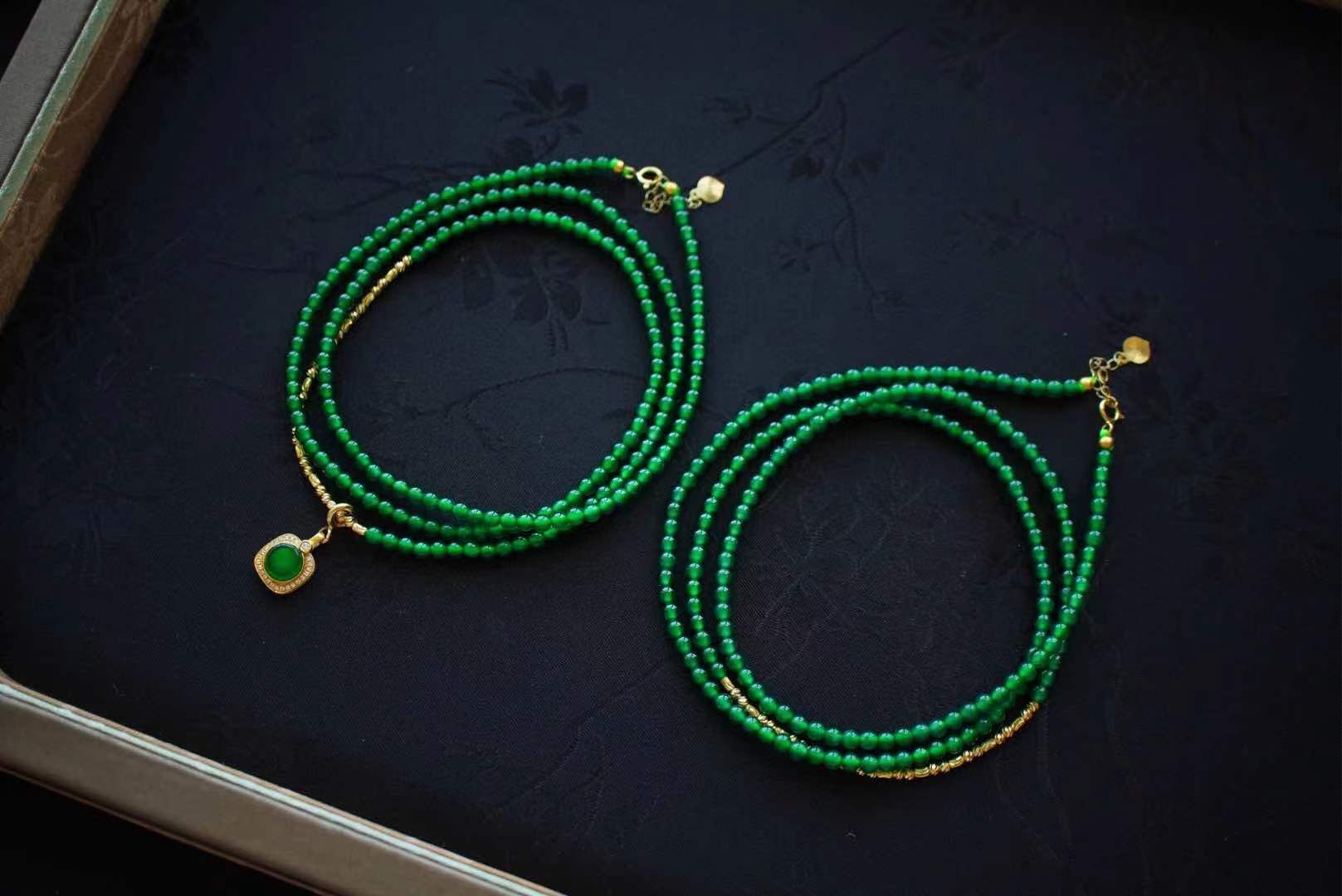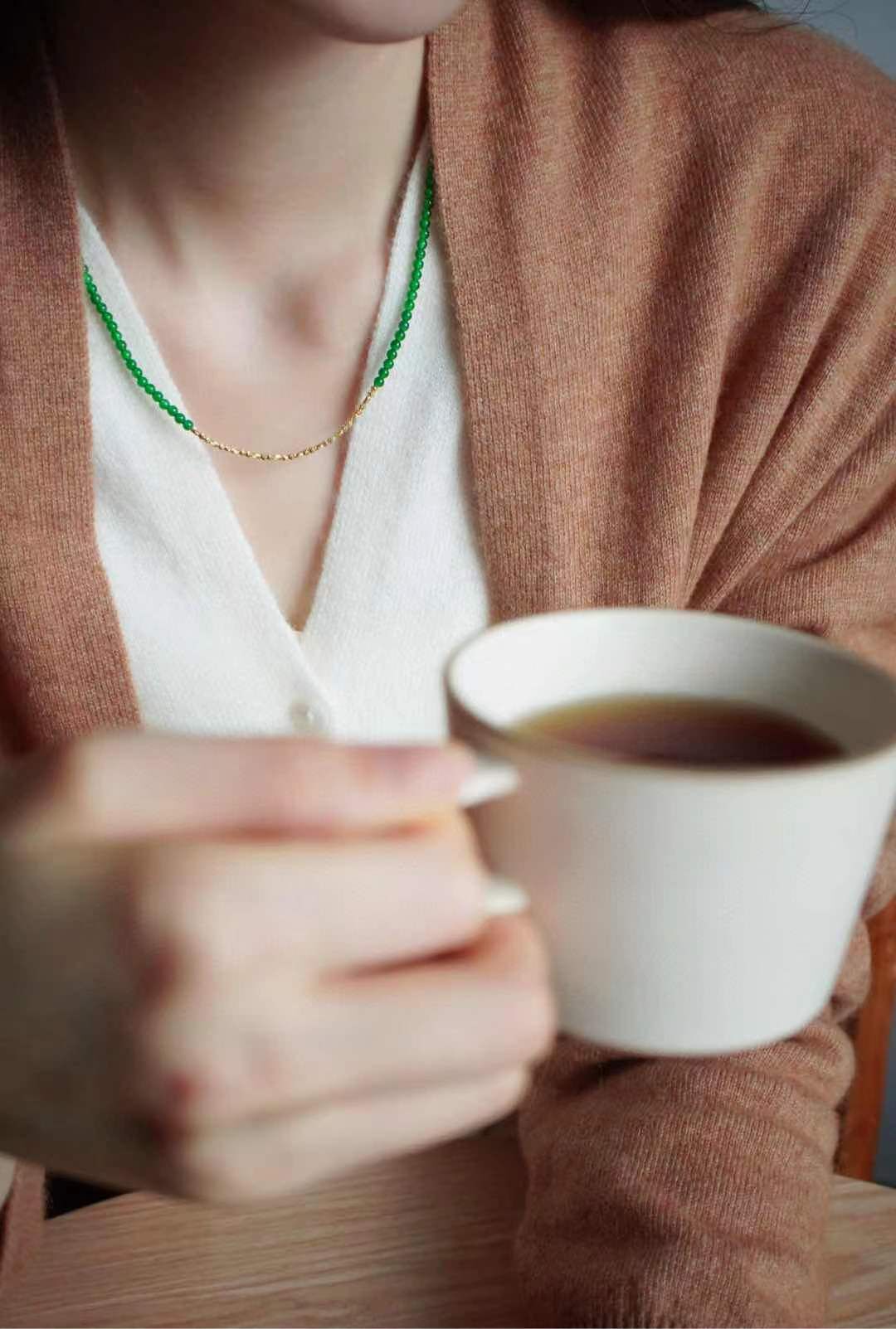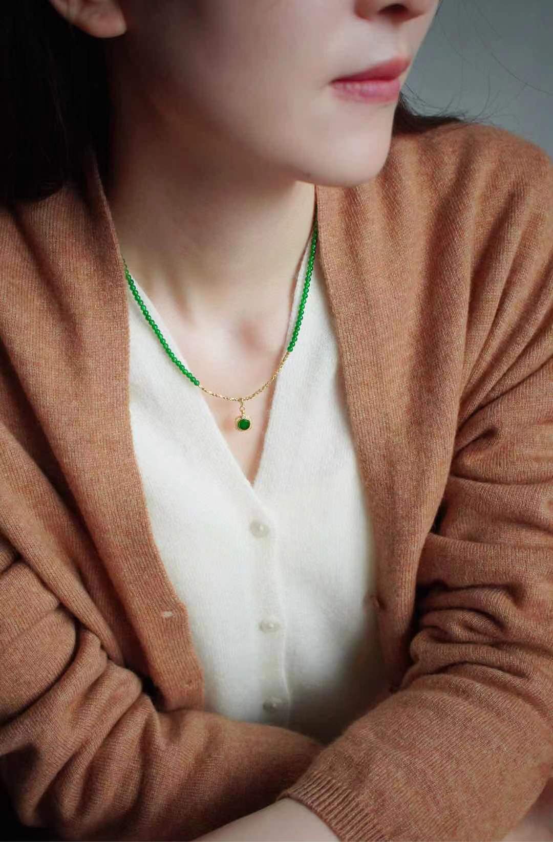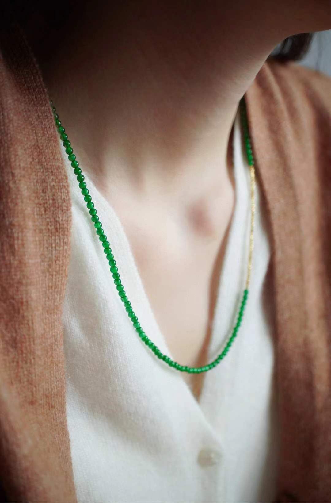設計款·天然翡翠小米鏈,天然翡翠A玉,這款被問爆了的Baby鏈,還沒正式上線就已經訂出7、8條,物色到了品質超高的一批滿色辣陽綠Baby珠,冰透冰透,顏值好高!