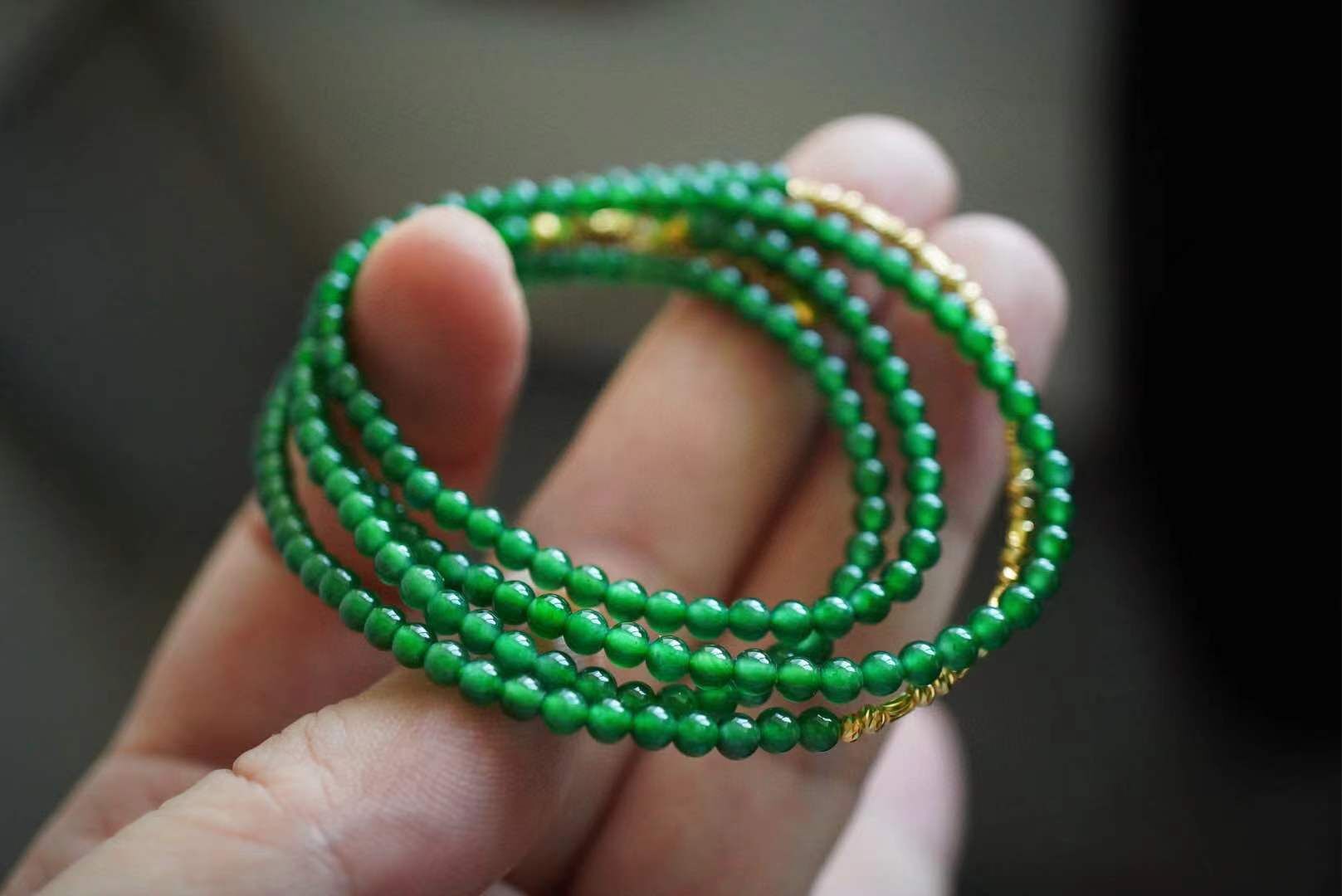 • 翡翠辣陽綠小米鏈 (裸珠 3mm),天然翡翠A玉, 緬甸玉, Jade, Jadeite