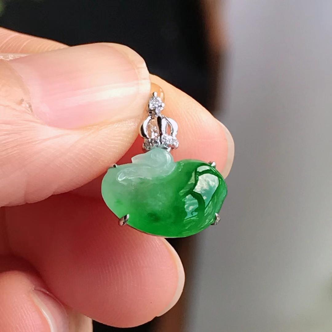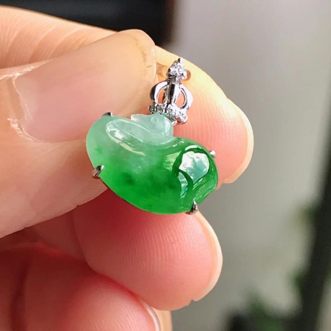 • 冰辣陽綠天鵝吊墜, 天然翡翠A玉, 緬甸玉, Jade, Jadeite