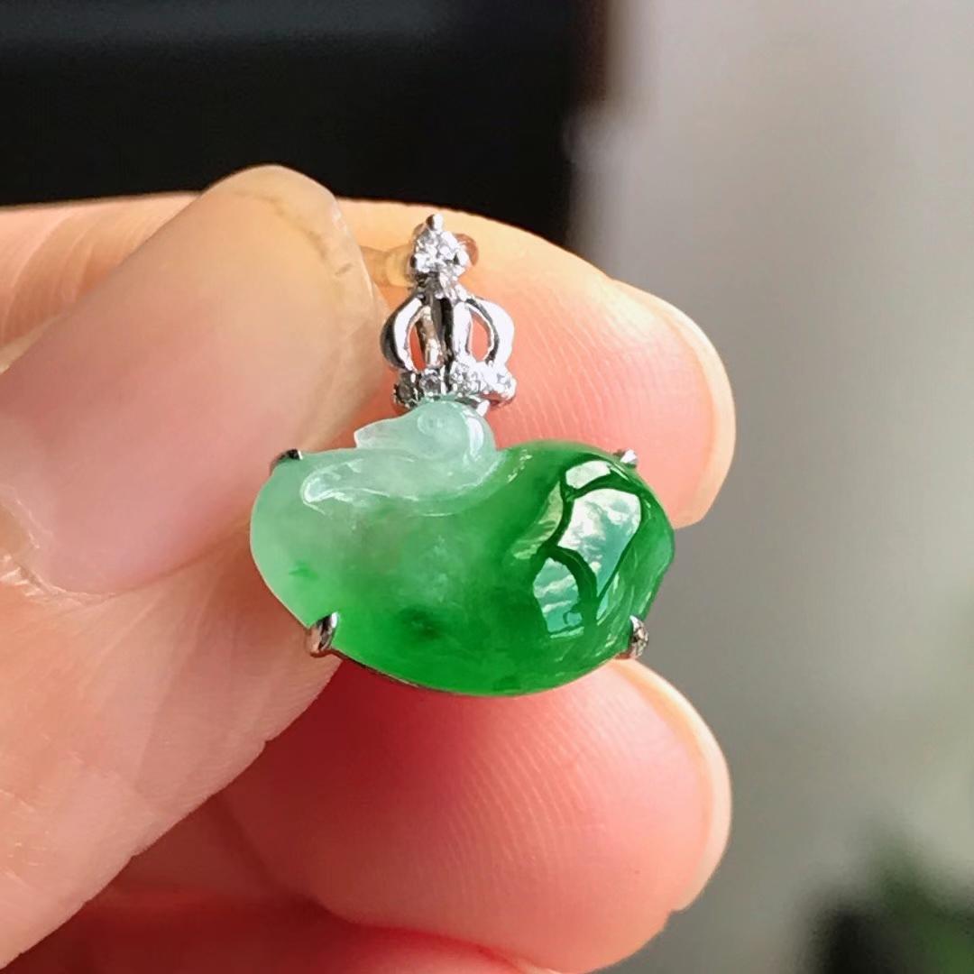 天然翡翠A玉,18K金鑲嵌,水潤光澤
