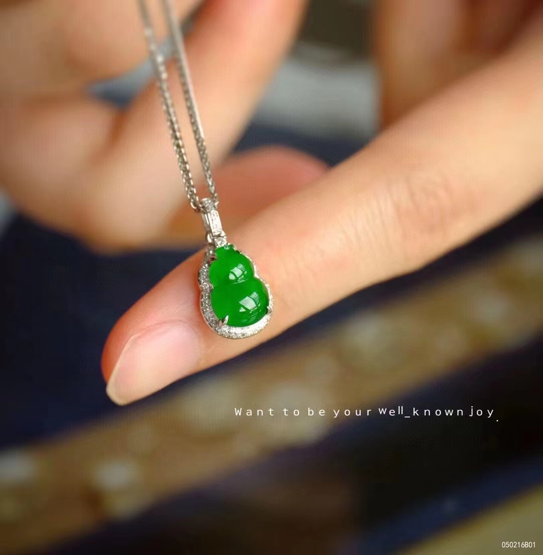• 濃陽綠葫蘆吊墜, 天然翡翠A玉, 緬甸玉, Jade, Jadeite