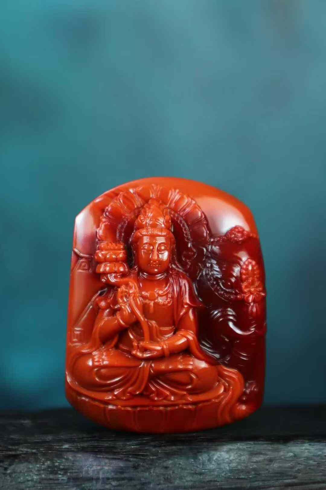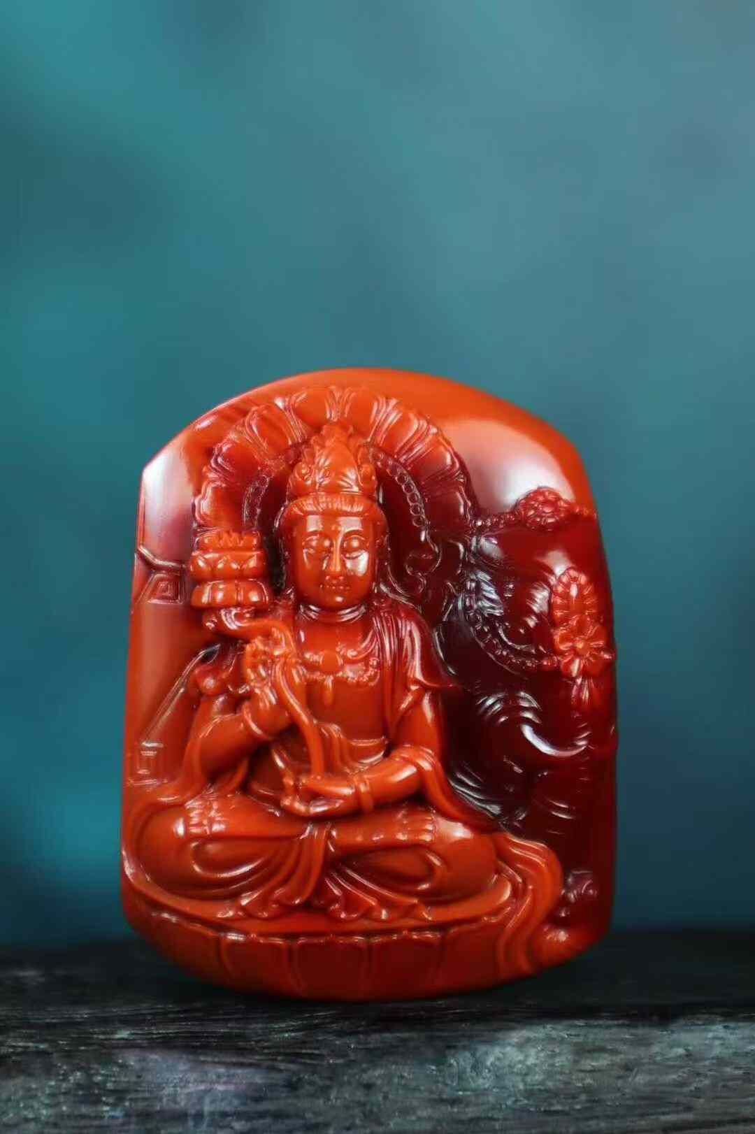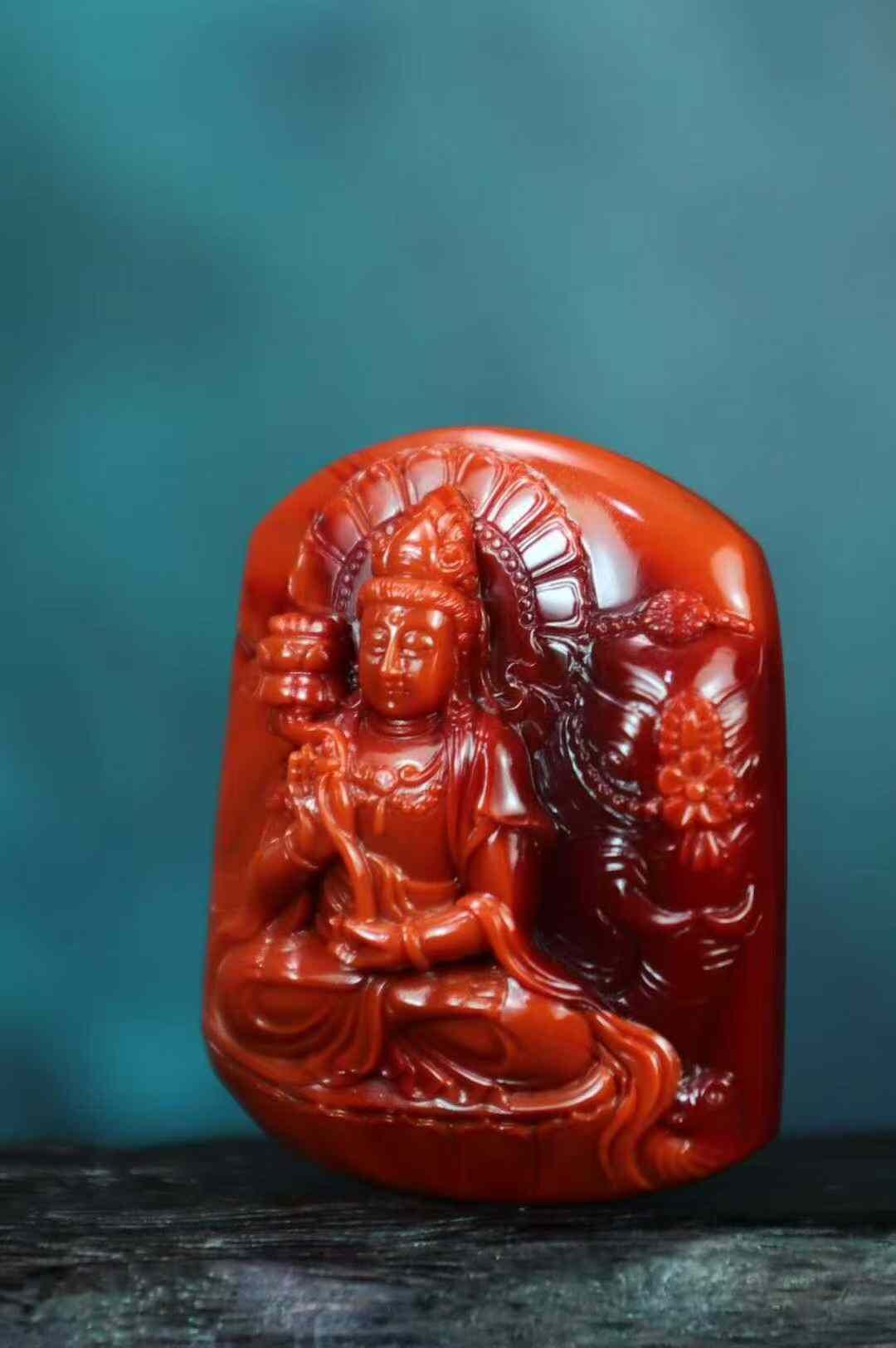 • 南紅普賢菩薩,天然南紅瑪瑙