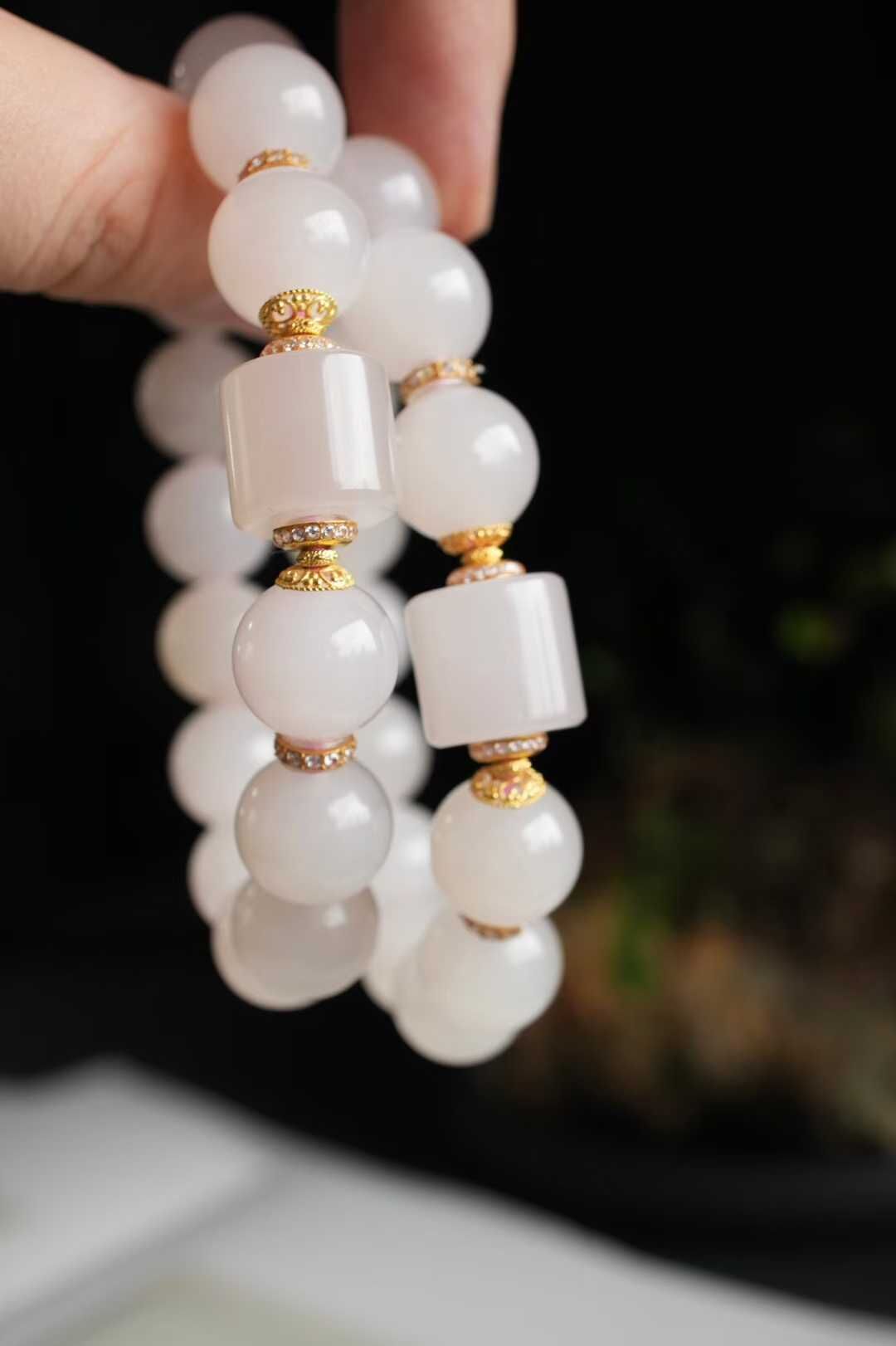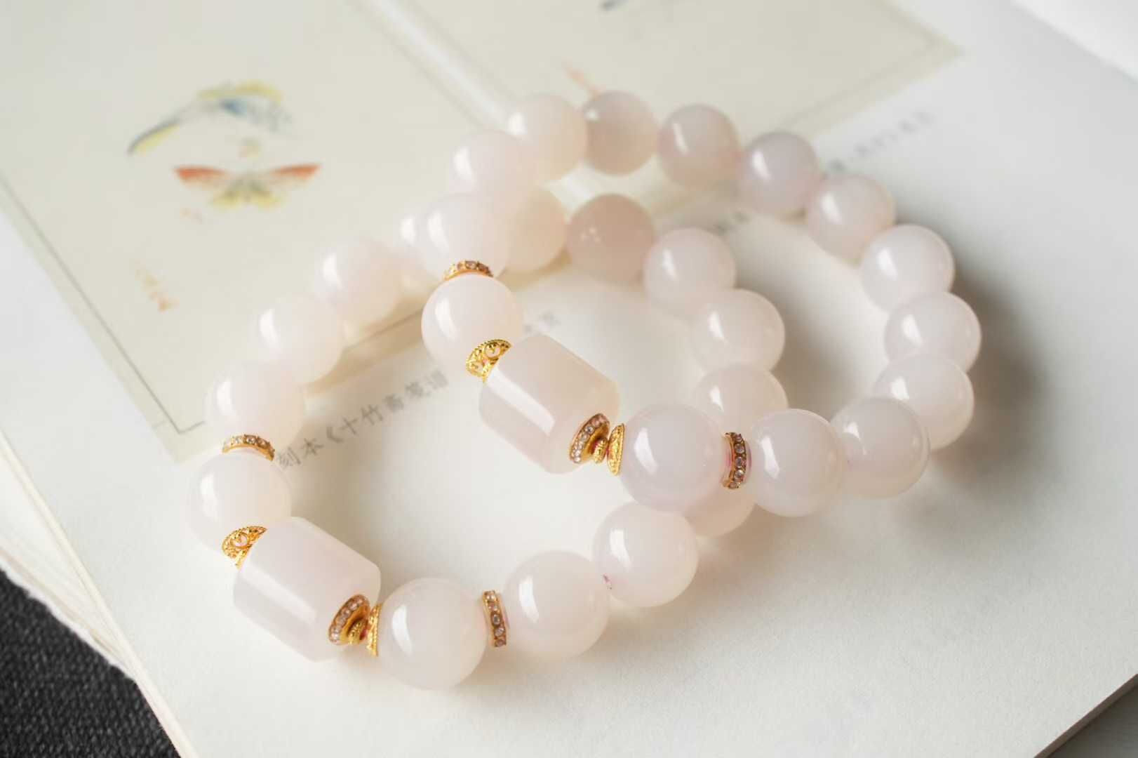 • 和田玉高品質藕粉手串 (12mm直徑),天然和田玉軟玉