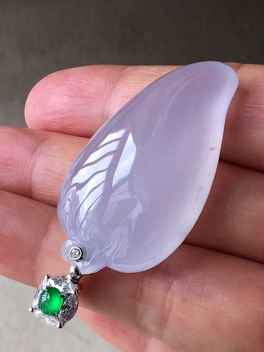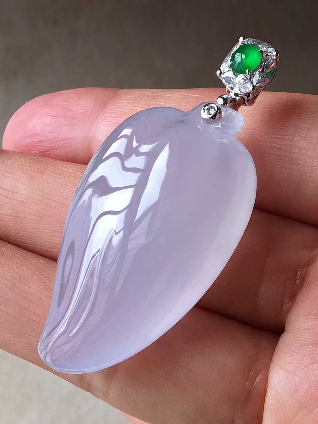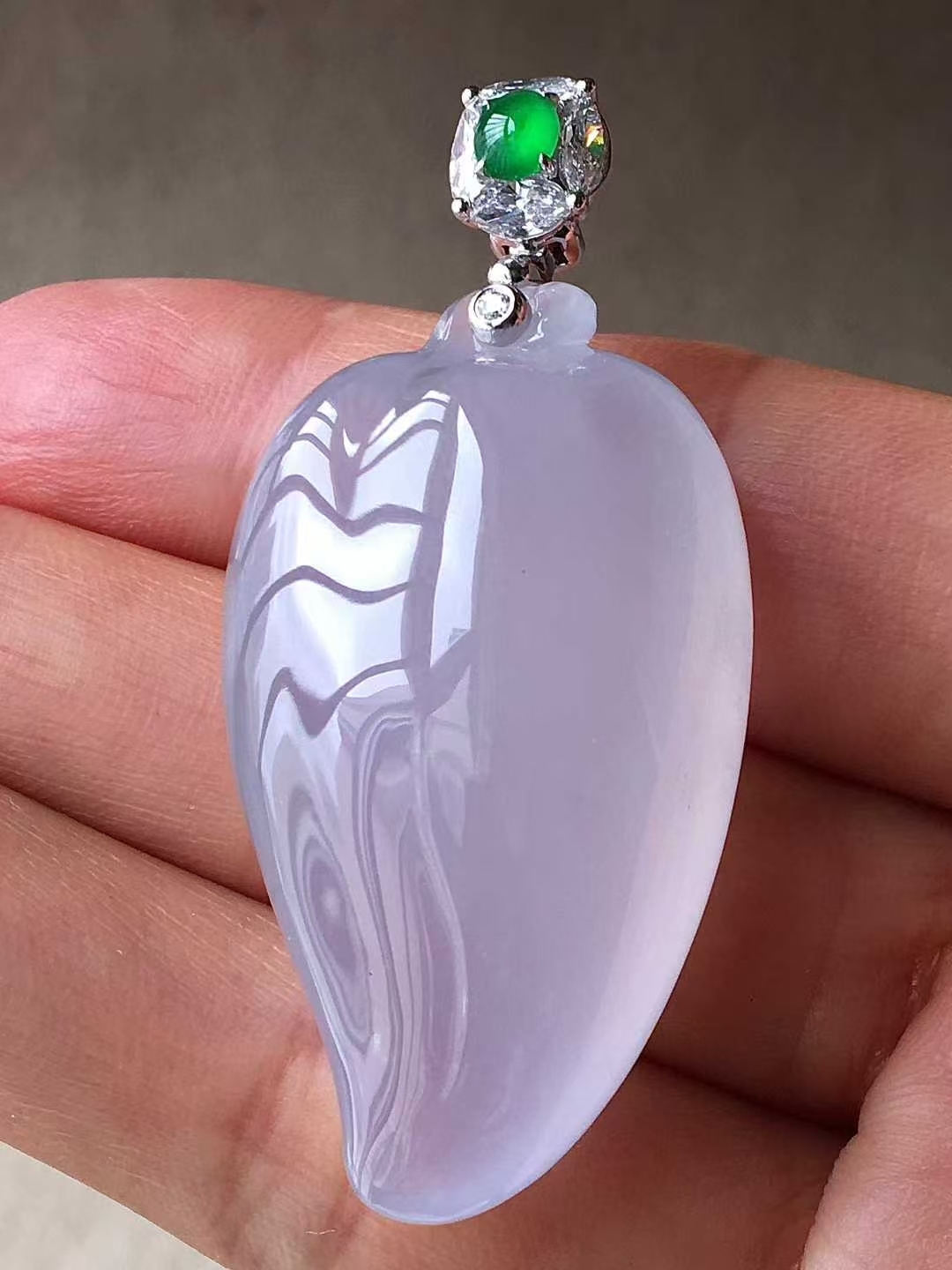 天然翡翠A玉,緬料,細膩起膠,飽滿水潤,完美無紋裂。