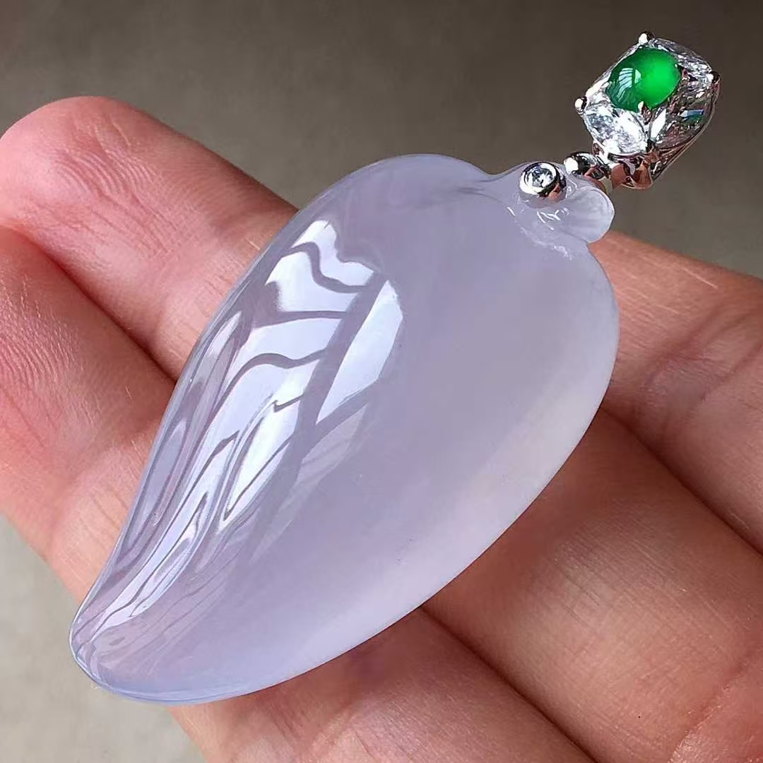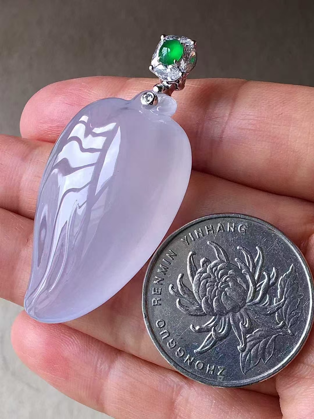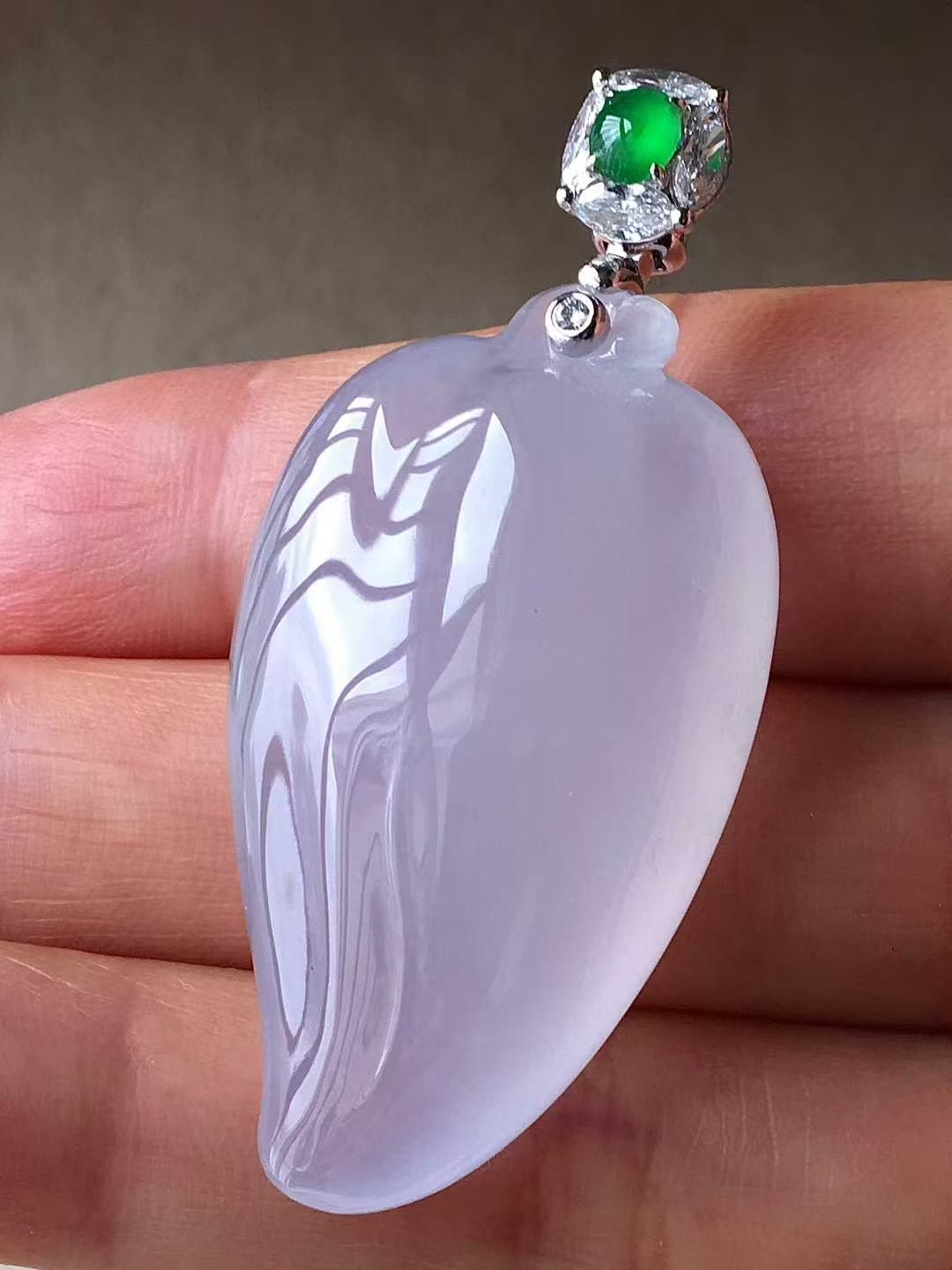 天然翡翠A玉,緬料,細膩起膠,飽滿水潤,完美無紋裂。