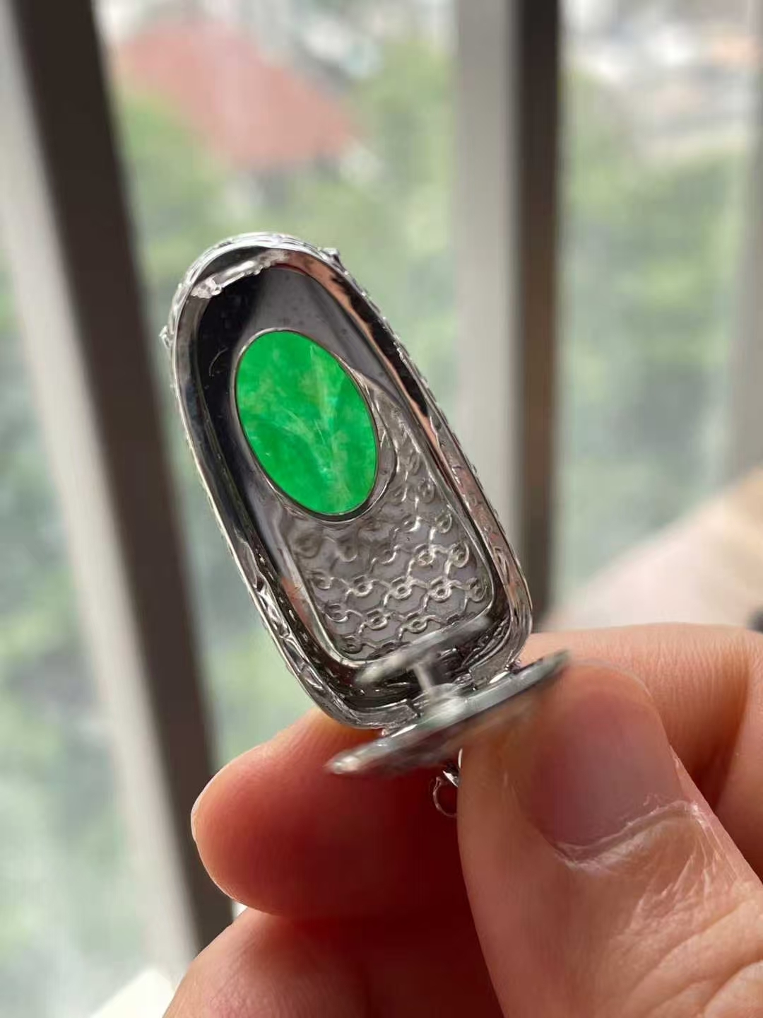 天然翡翠A玉,緬料,色辣,18K金鑲嵌,飽滿水潤,完美無紋裂。