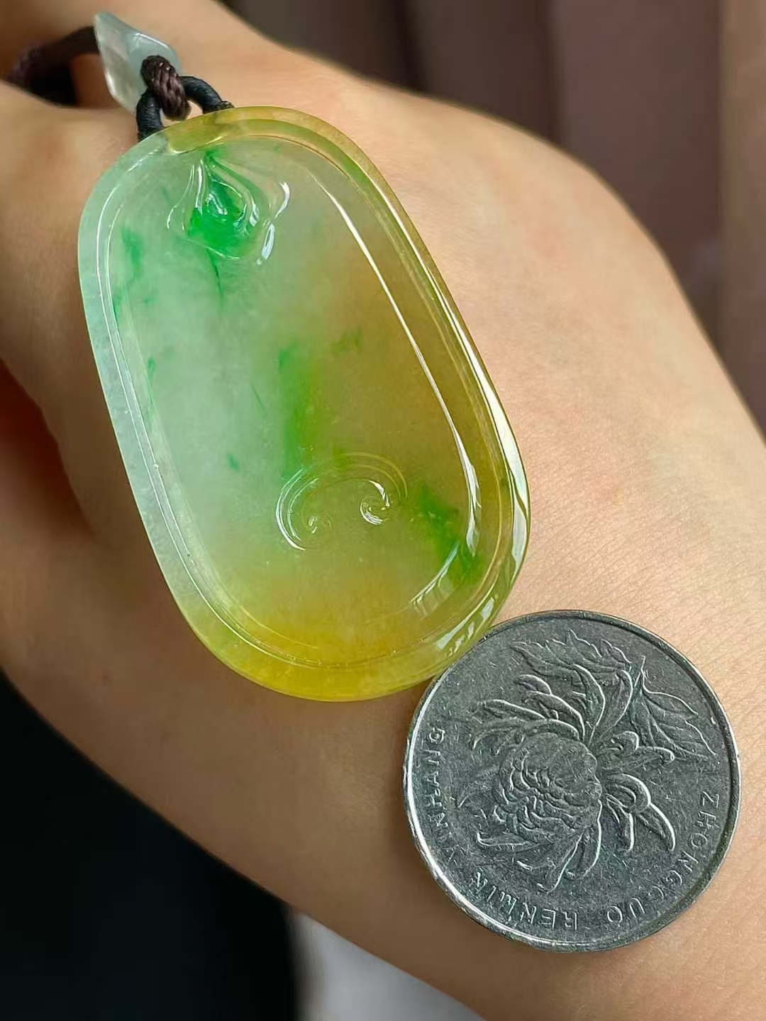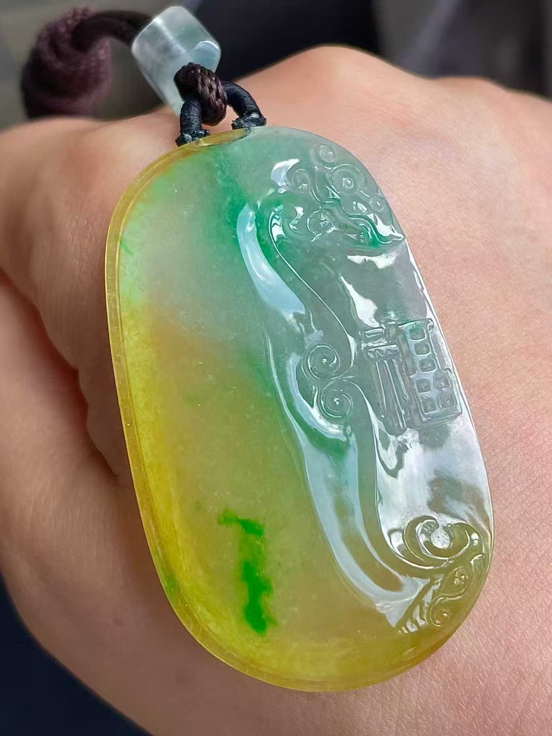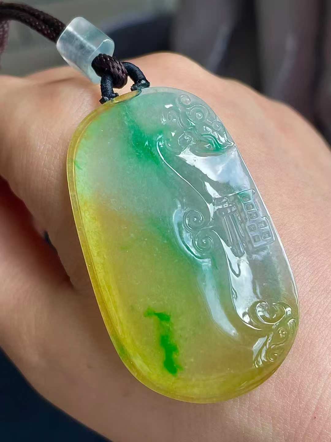 9105557 翡翠冰黃加綠福牌吊墜