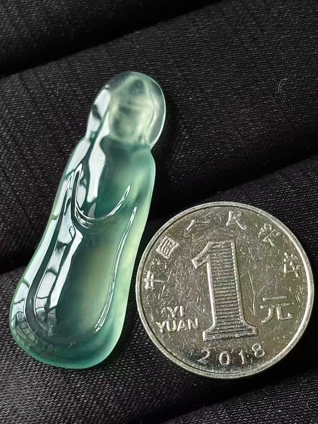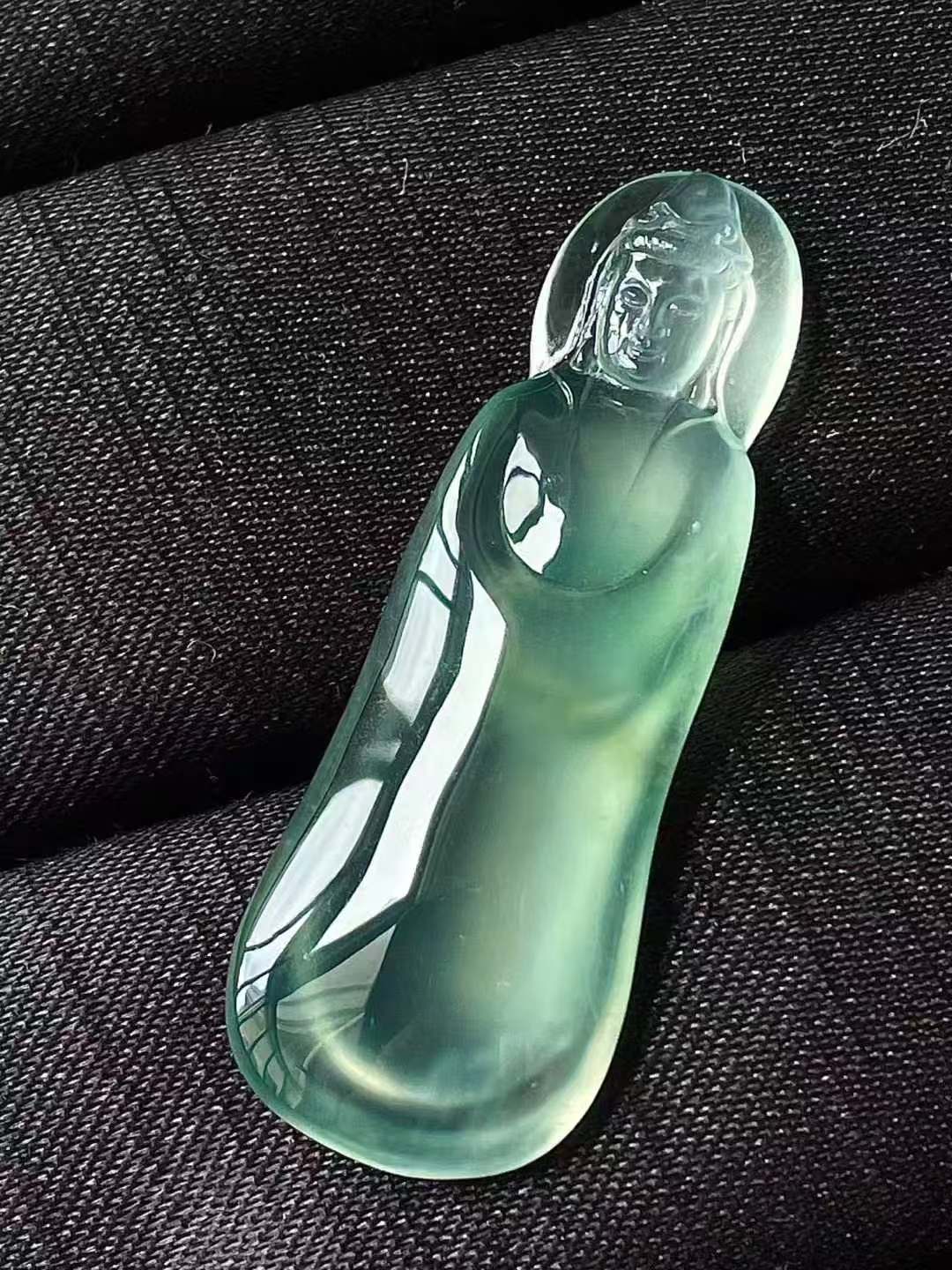 • 翡翠玻璃種自在觀音吊墜,天然翡翠A玉, 緬甸玉, Jade, Jadeite