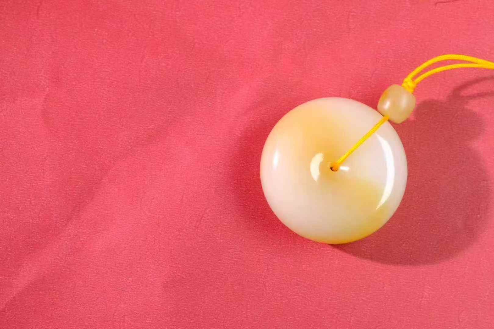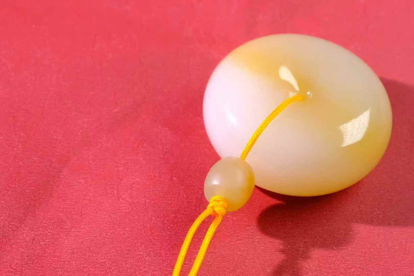 孤品!和田玉巴沙糖白麵包圈,鑲嵌品相,油潤細膩無裂。
