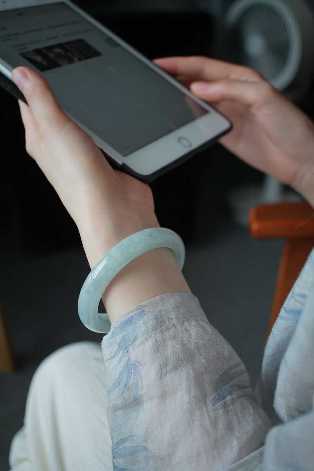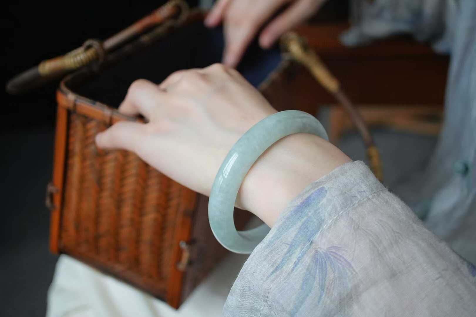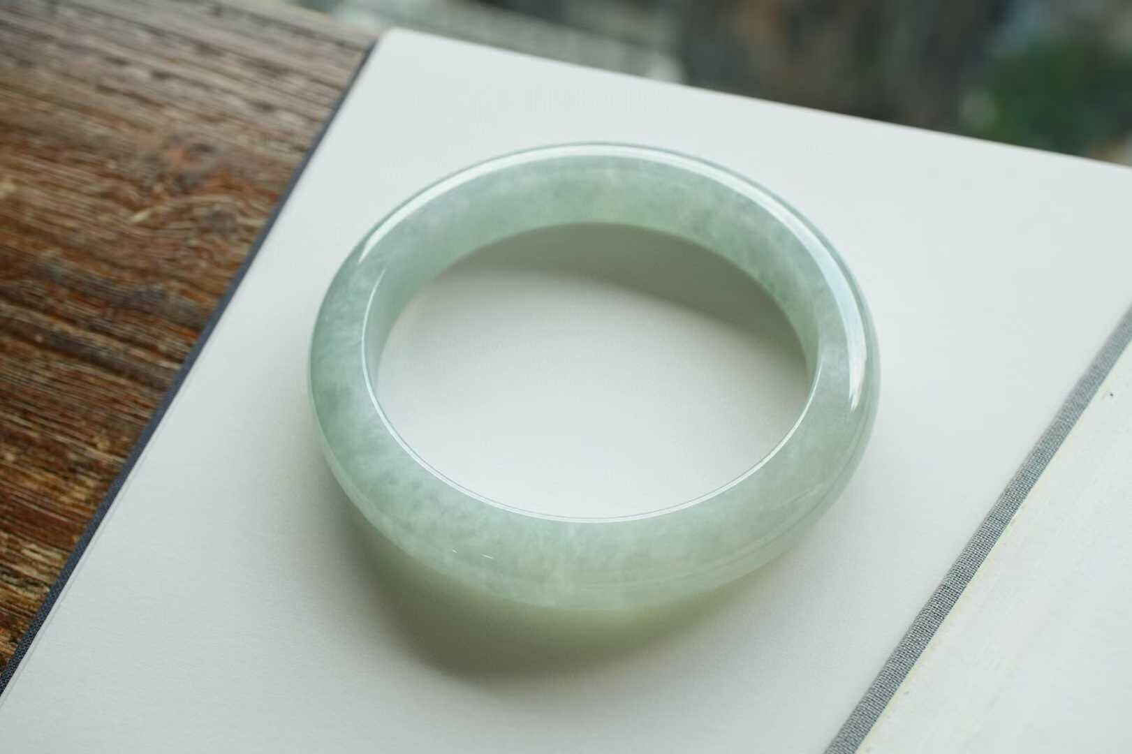 天然翡翠A玉,緬料老坑種,種質細膩,冰潤水頭足,淡淡晴水綠,完美品相,上手清婉耐看,冰清玉潔即視感。