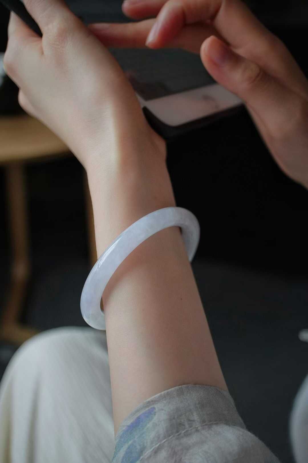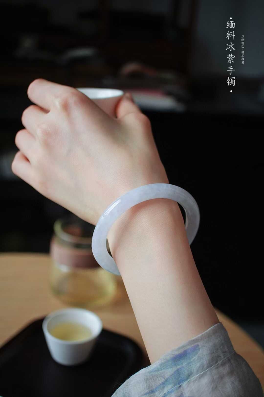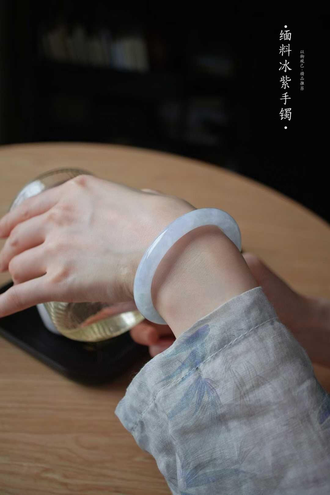 天然翡翠A玉,緬料,淡顏系紫羅蘭,冰感十足,水汪汪的特別好看,完美品相。圓條上手分別溫婉,推薦!圈口53.2號圓條,53-55的手可以戴。
