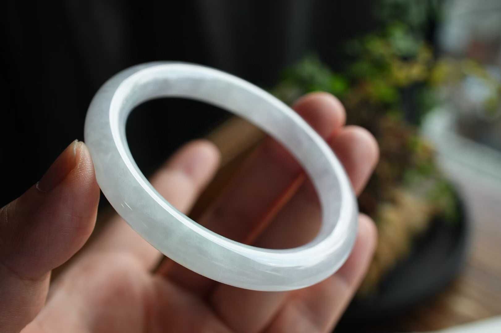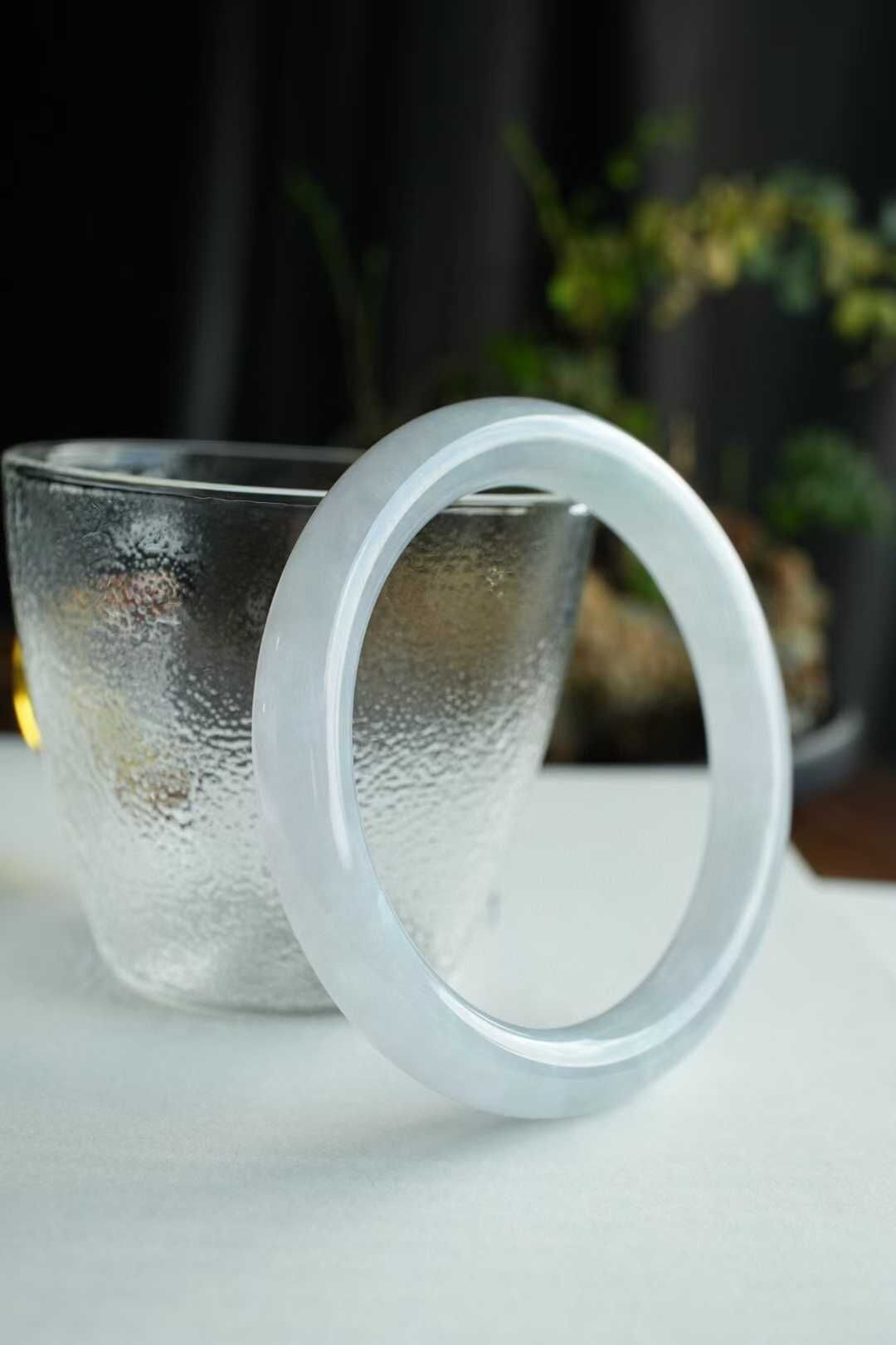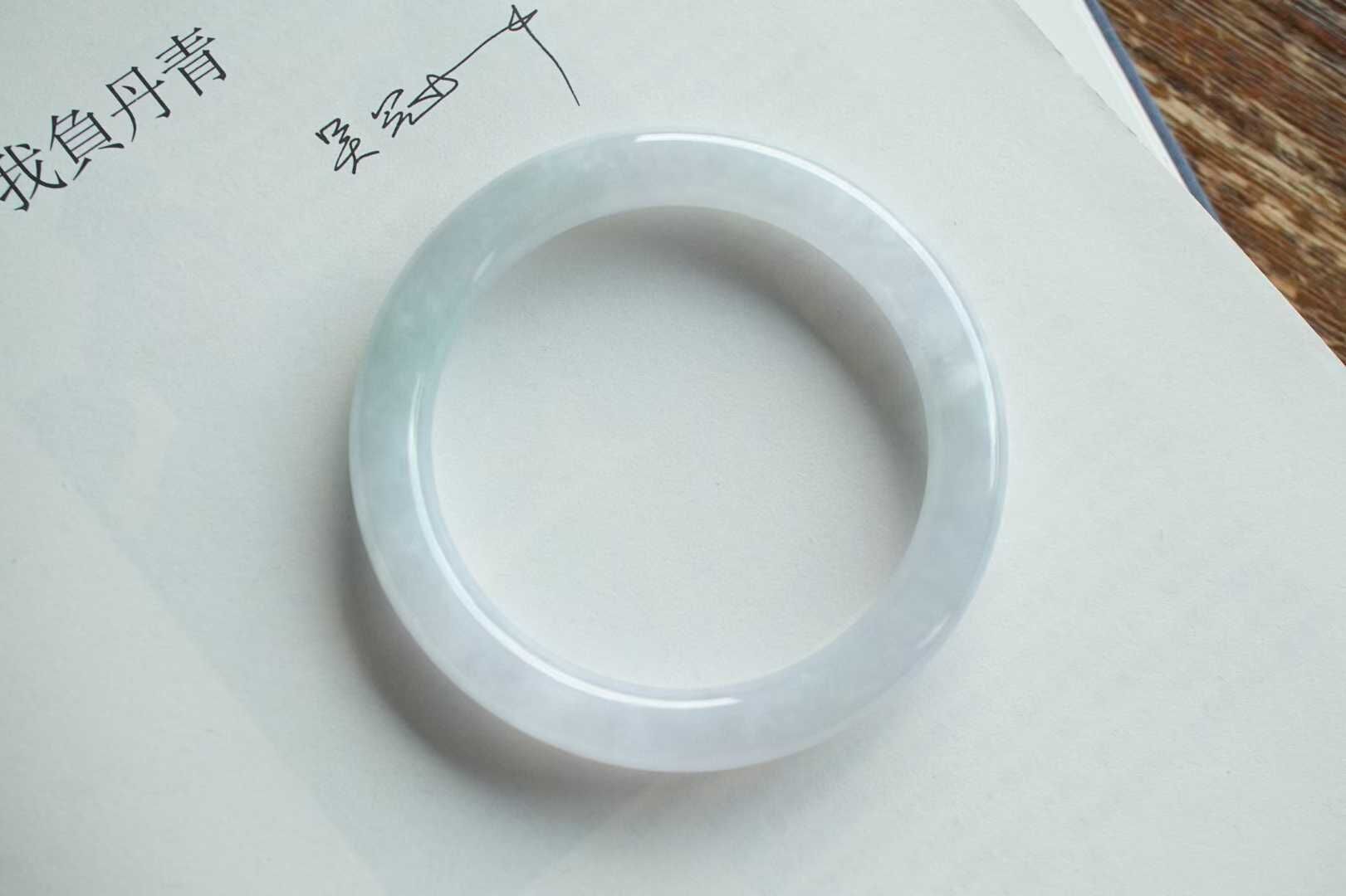 天然翡翠A玉,緬料,淡顏系紫羅蘭,冰感十足,水汪汪的特別好看,完美品相。圓條上手分別溫婉,推薦!圈口53.2號圓條,53-55的手可以戴。