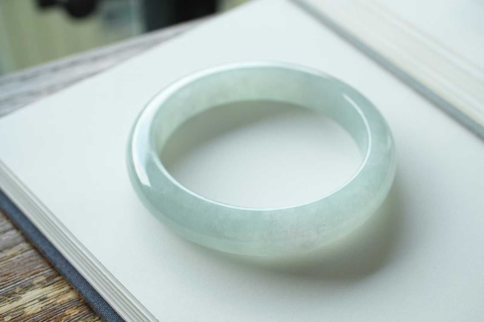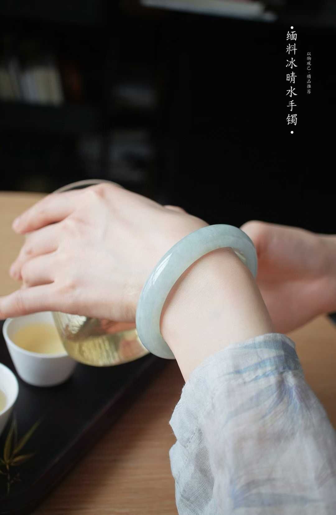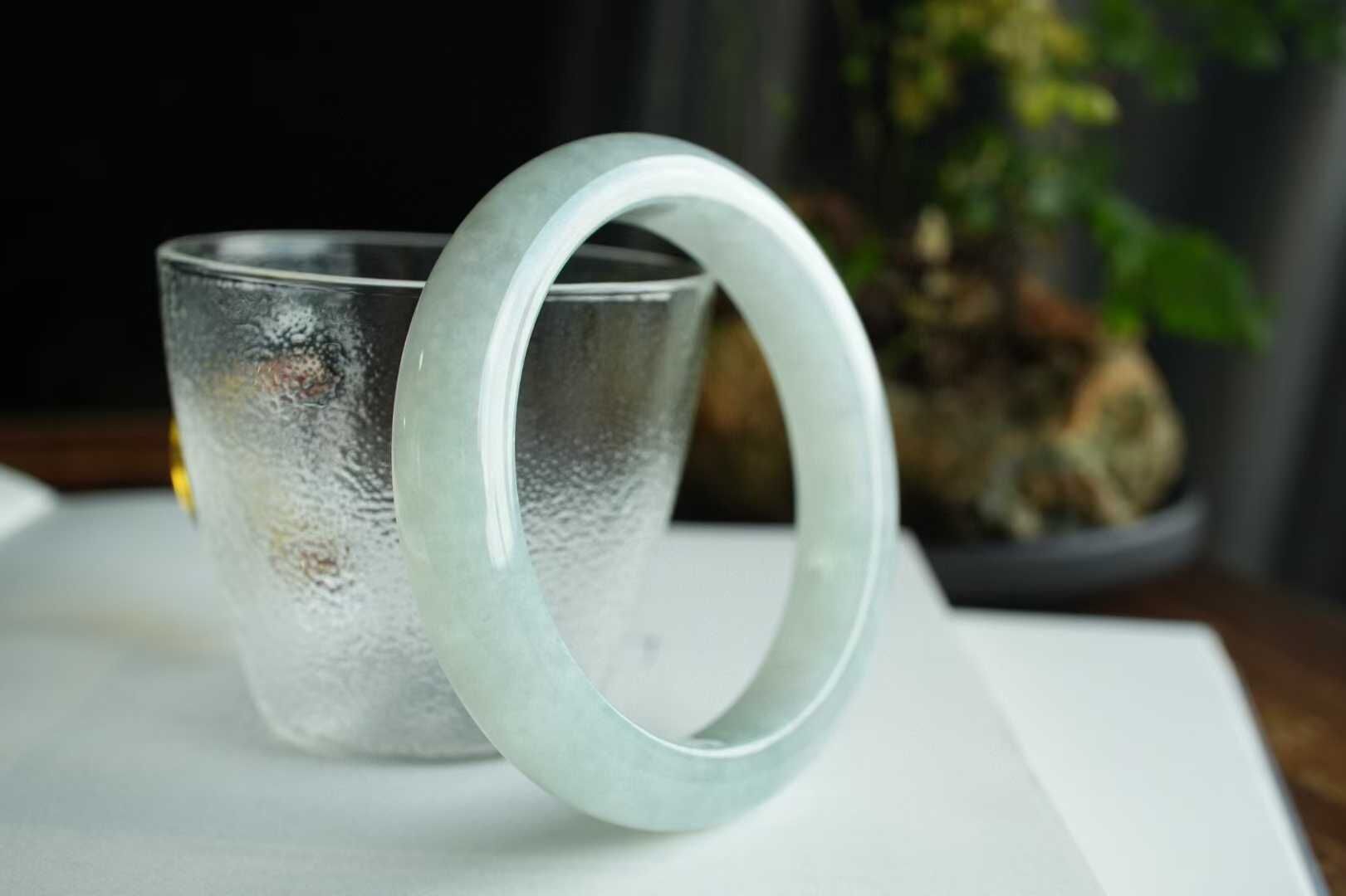 天然翡翠A玉,緬料老坑種,手鐲色調清新脫俗宛如清,種質細膩,水潤潤的質感更顯清麗動人,完美品相,正圈手鐲,佩戴典雅美麗,溫婉大方。